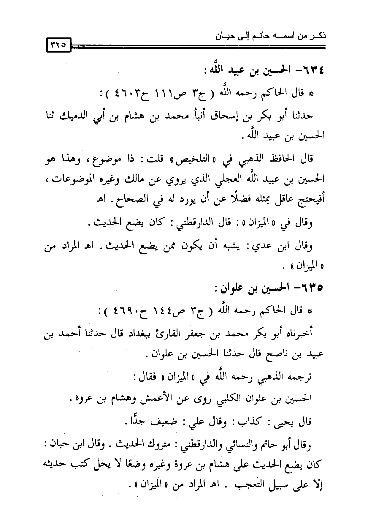 * قال الحاكم رحمه الله (ج 3 ص 144 ح 4690):