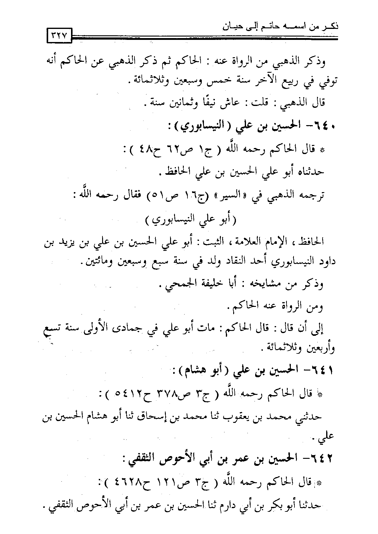 * قال الحاكم رحمه الله (ج 1 ص 62 ح 48):