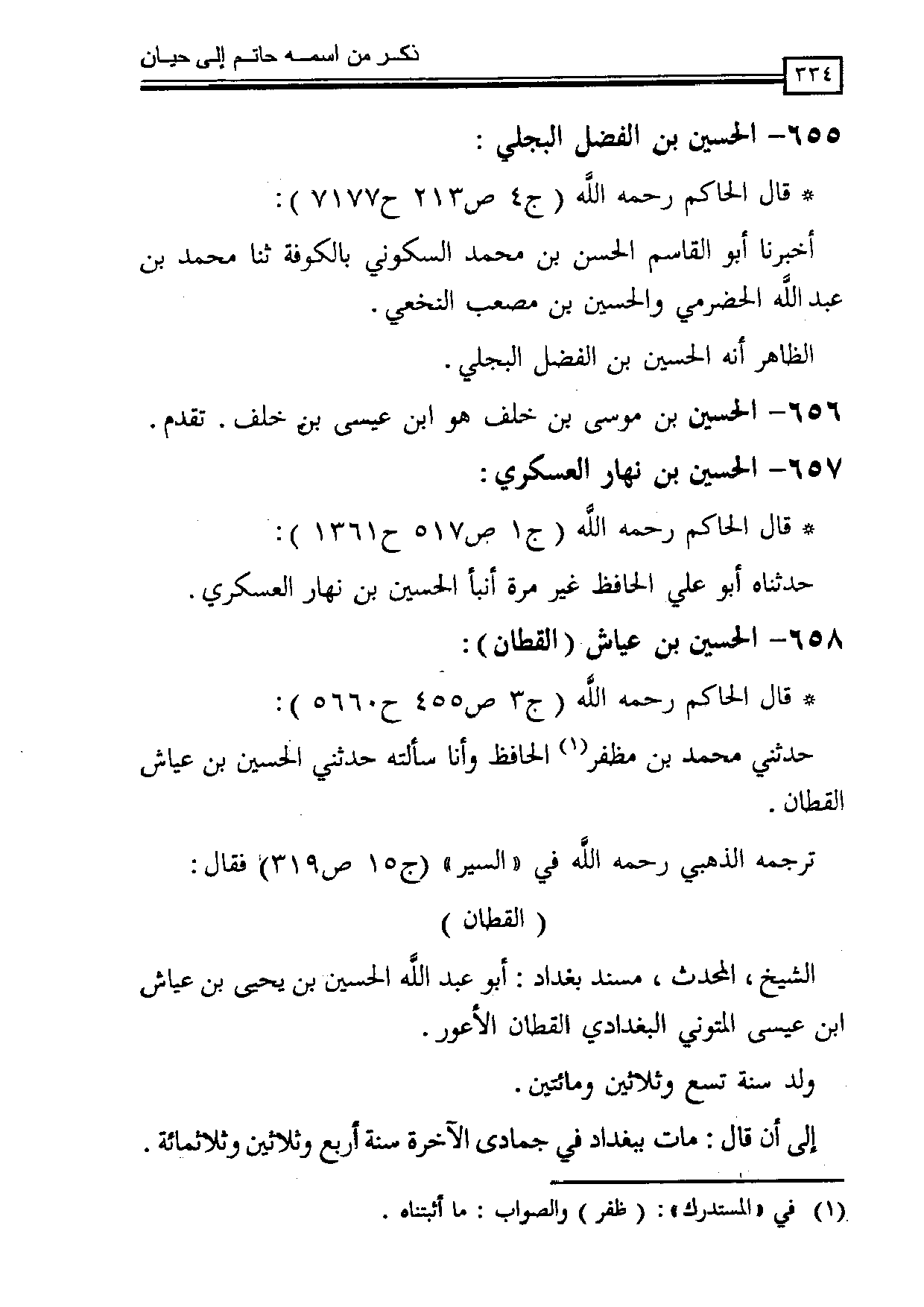 * قال الحاكم رحمه الله (ج 4 ص 213 ح 7177):