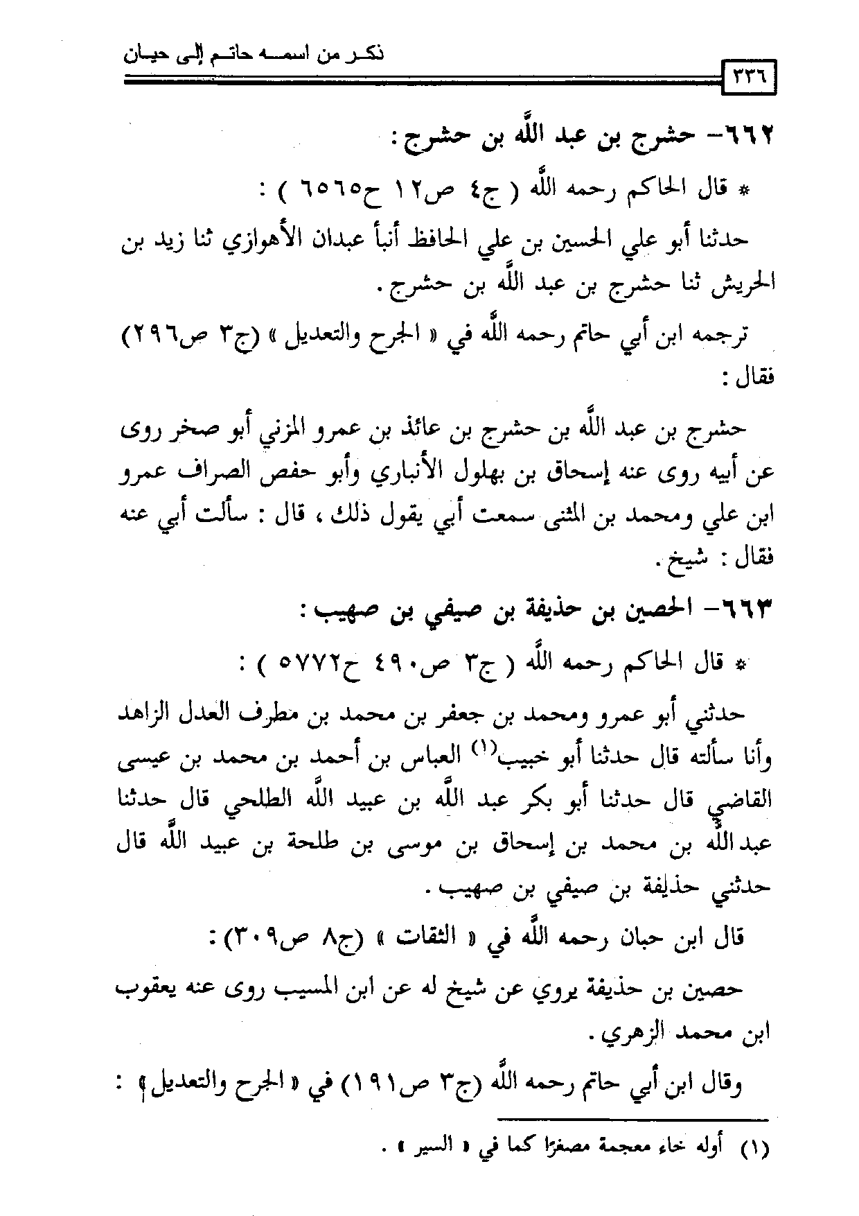 حدثنا أبو علي الحسين بن علي الحافظ، أنبأ عبدان الأهوازي، ثنا زيد بن الحريش، ثنا حشرج بن عبد الله بن حشرج.