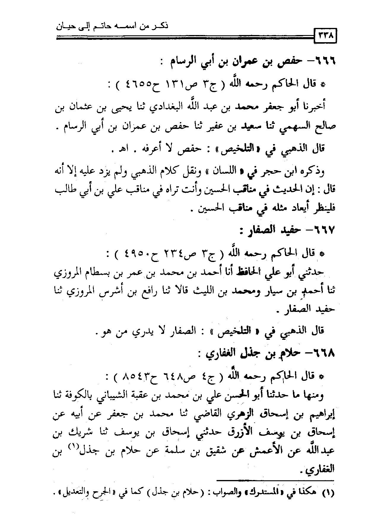 * قال الحاكم رحمه الله (ج 4 ص 648 ح 8543):