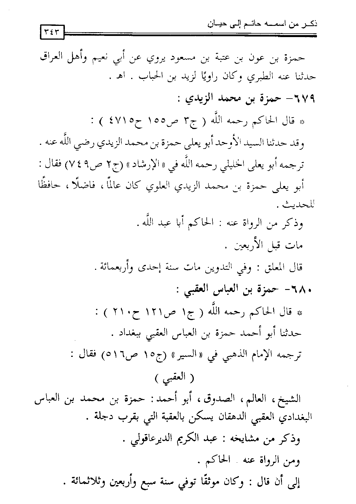 ترجمه أبو يعلى الخليلي رحمه الله في " الإرشاد " (ج 2 ص 749) فقال: أبو يعلى حمزة بن محمد الزيدي العلوي كان عالما، فاضلا، حافظا للحديث.