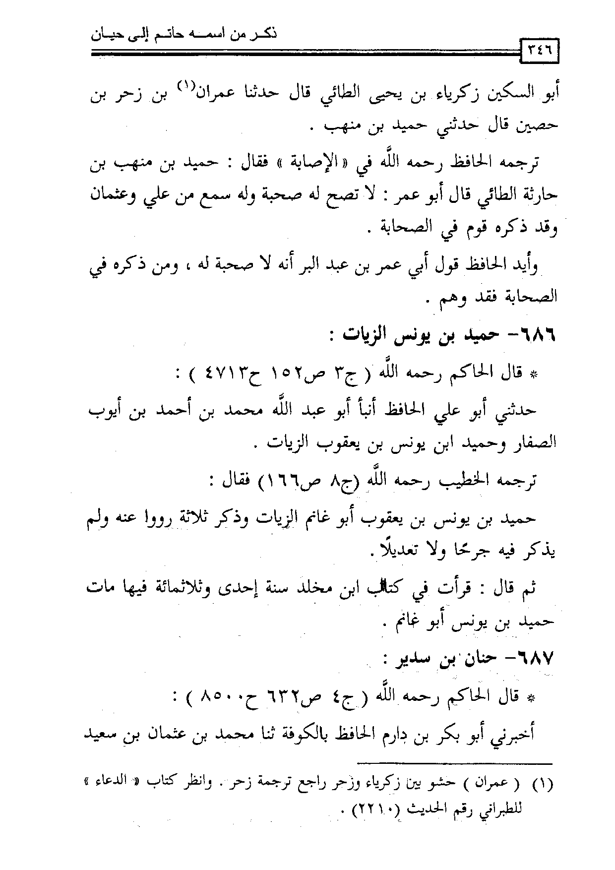 أبو السكين زكرياء بن يحيى الطائي قال: حدثنا عمران بن زحر بن حصين، قال: حدثني حميد بن منهب.