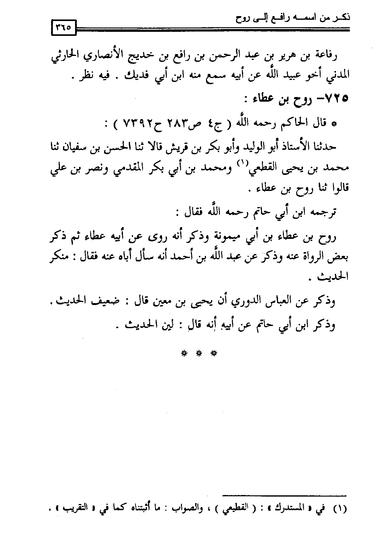 حدثنا الأستاذ أبو الوليد وأبو بكر بن قريش، قالا: ثنا الحسن بن سفيان، ثنا محمد بن يحيى القطعي، ومحمد بن أبي بكر المقدمي ونصر بن علي، قالوا: ثنا روح بن عطاء.