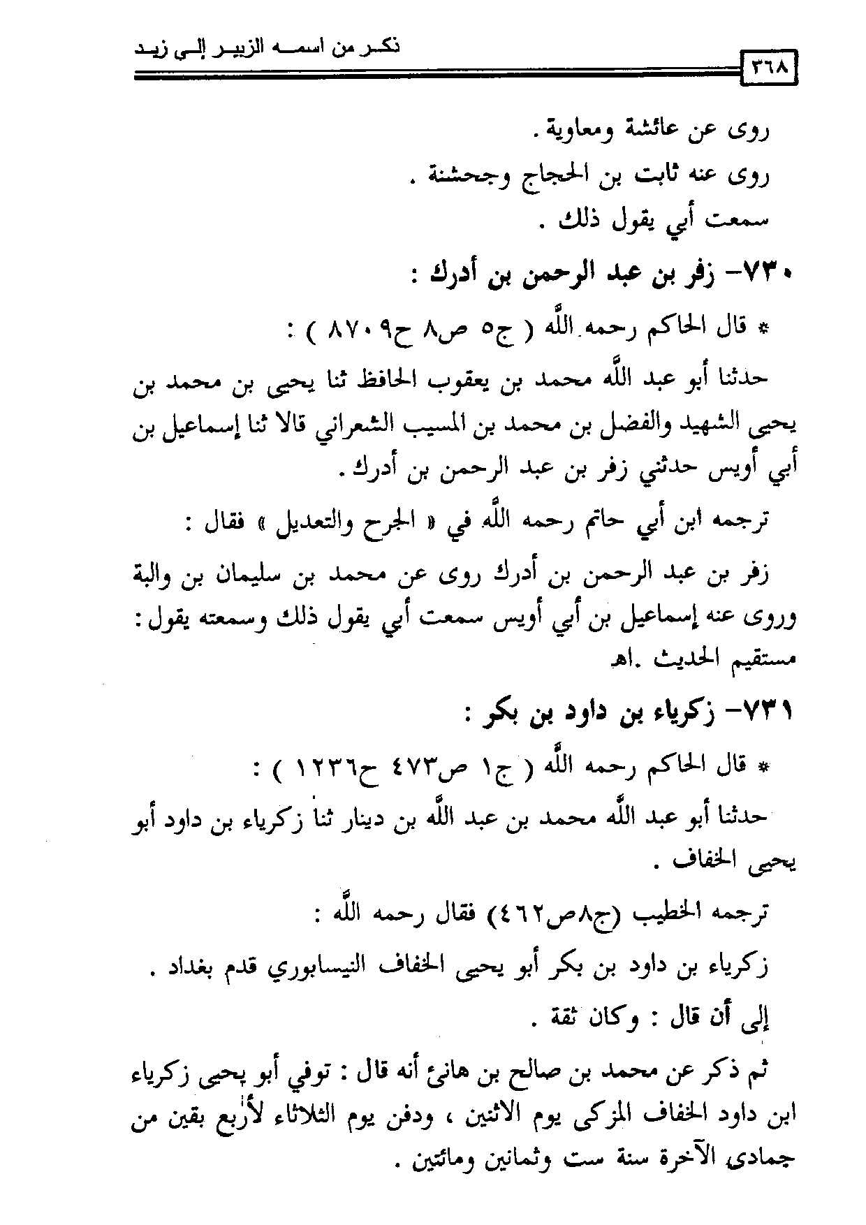 حدثنا أبو عبد الله محمد بن يعقوب الحافظ، ثنا يحيى بن محمد بن يحيى الشهيد، والفضل بن محمد بن المسيب الشعراني، قالا: ثنا إسماعيل بن أبي أويس، حدثني زفر بن عبد الرحمن بن أدرك.