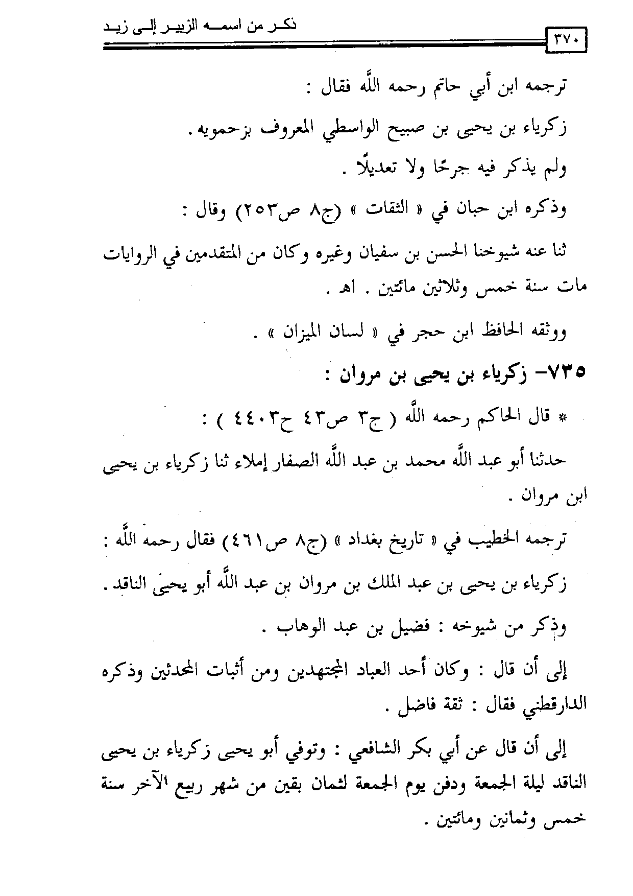 حدثنا أبو عبد الله محمد بن عبد الله الصفار إملاء، ثنا زكرياء بن يحيى بن مروان.