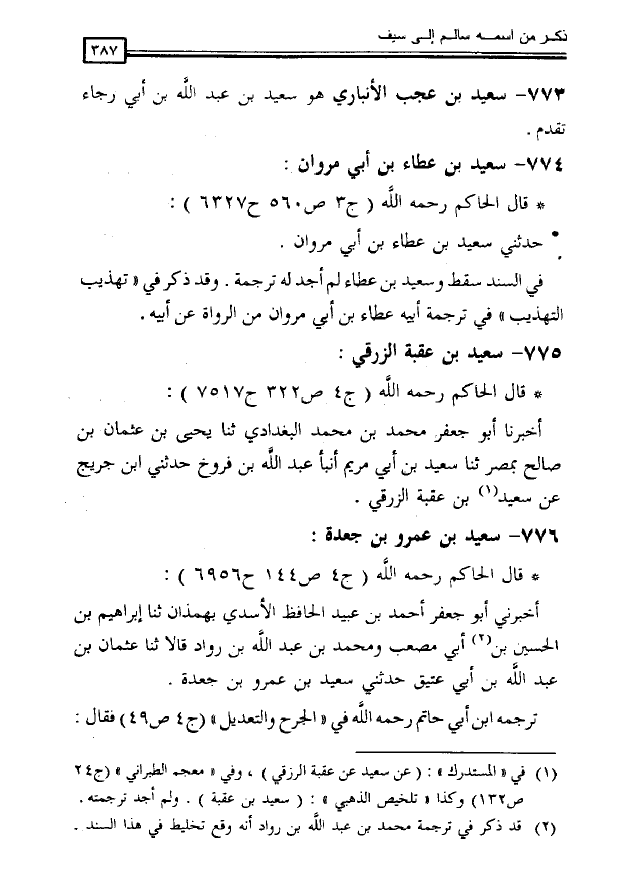 * قال الحاكم رحمه الله (ج 3 ص 560 ح 6327): حدثني سعيد بن عطاء بن أبي مروان.