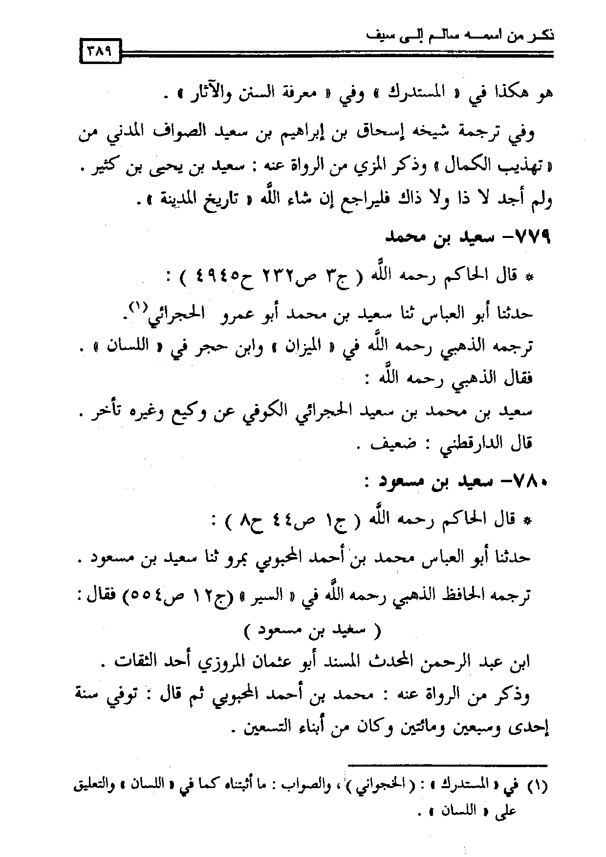 * قال الحاكم رحمه الله (ج 3 ص 232 ح 4945):