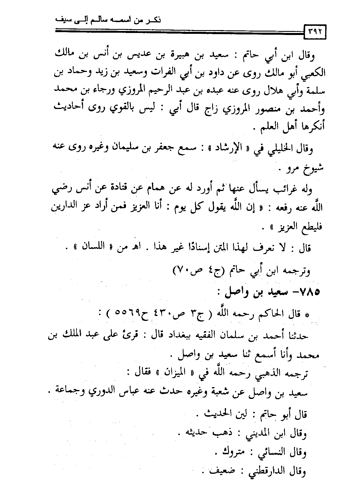 حدثنا أحمد بن سلمان الفقيه ببغداد قال: قرئ على عبد الملك بن محمد وأنا أسمع، ثنا سعيد بن واصل.