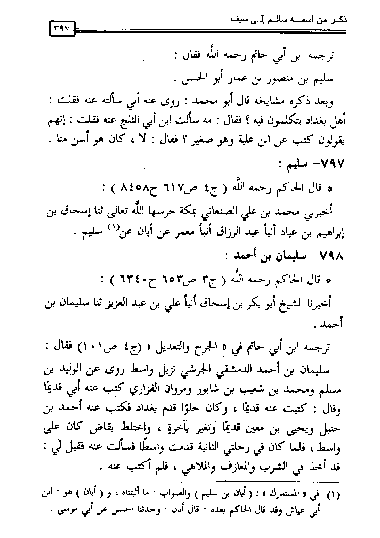 أخبرني محمد بن علي الصنعاني بمكة حرسها الله تعالى، ثنا إسحاق بن إبراهيم بن عباد، أنبأ عبد الرزاق، أنبأ معمر، عن أبان، عن سليم.