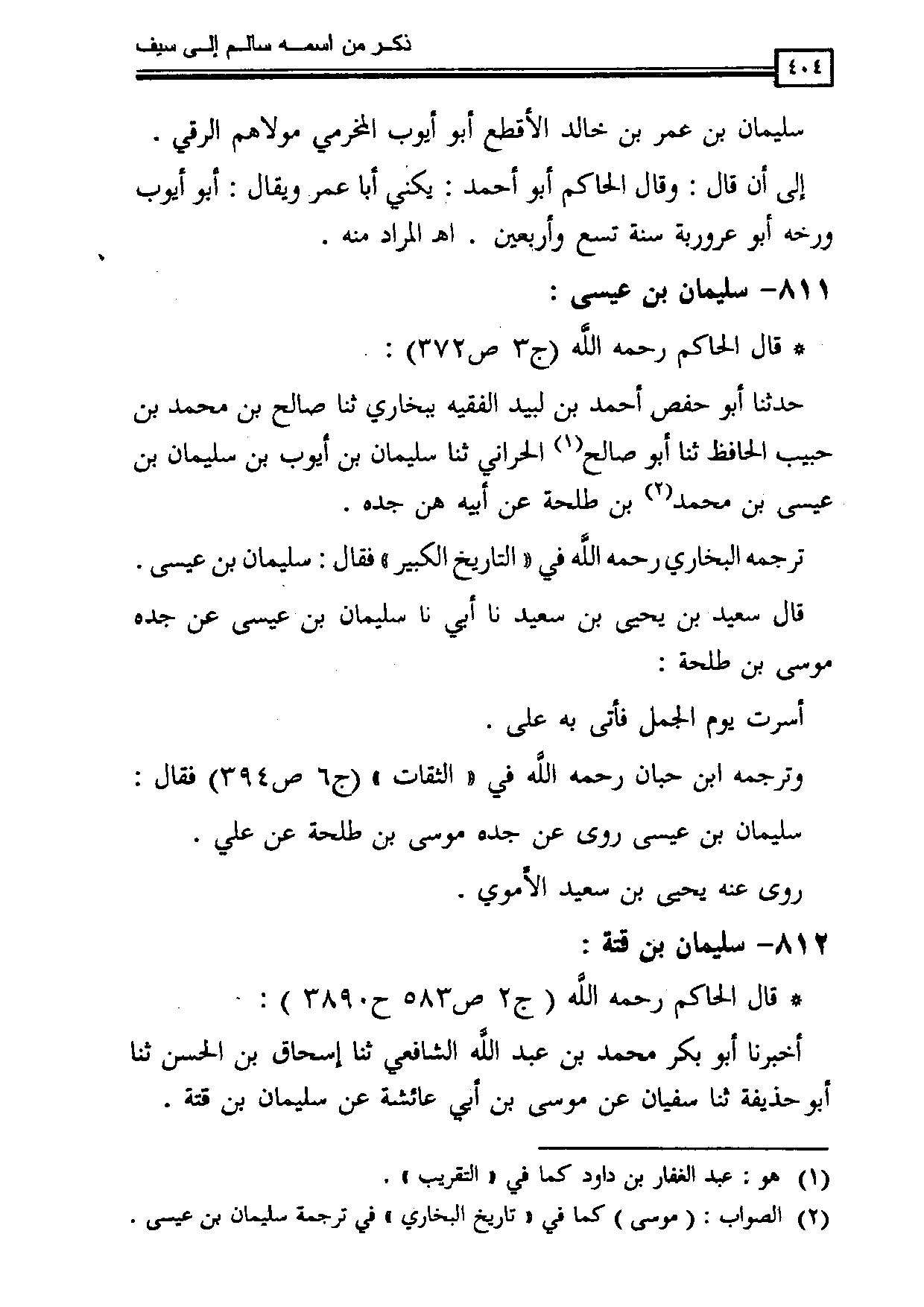 ترجمه البخاري رحمه الله في " التاريخ الكبير " فقال سليمان بن عيسى.