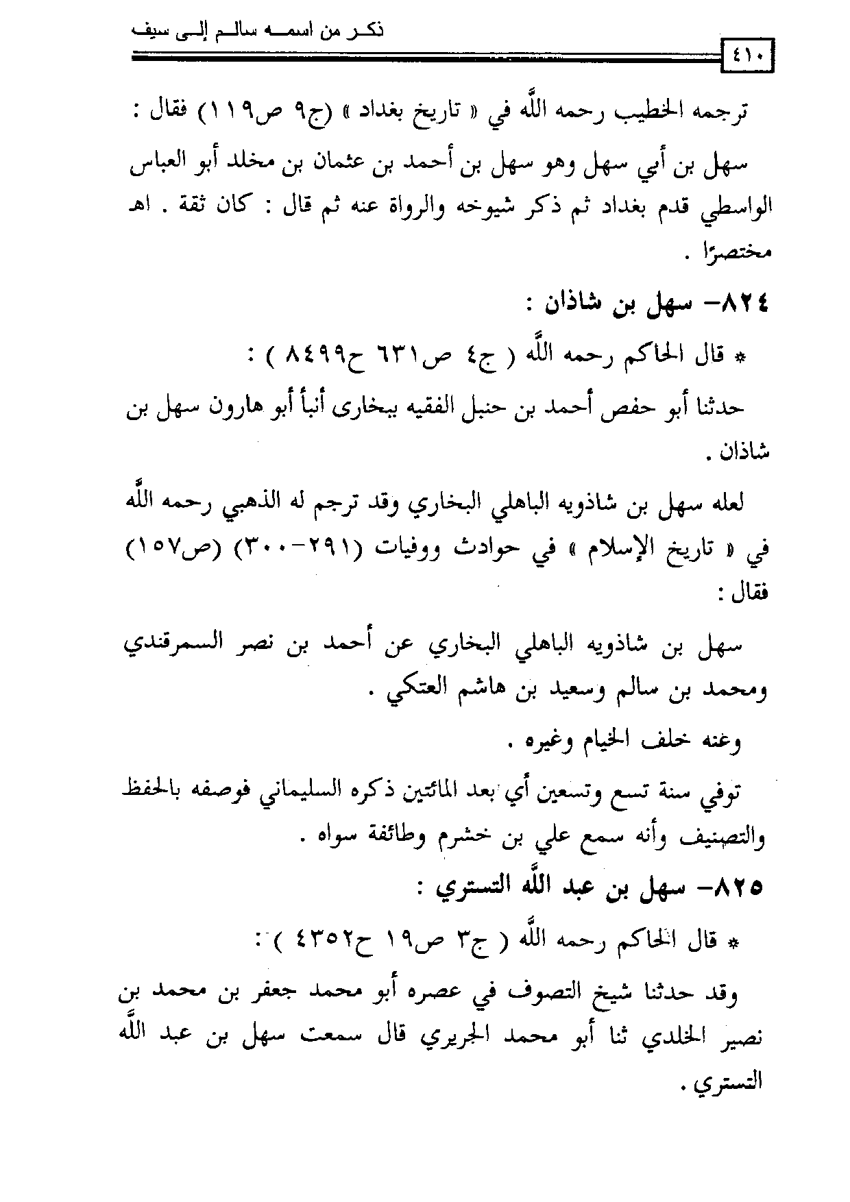 سهل بن شاذويه الباهلي البخاري عن أحمد بن نصر السمرقندي ومحمد بن سالم وسعيد بن هاشم العتكي.