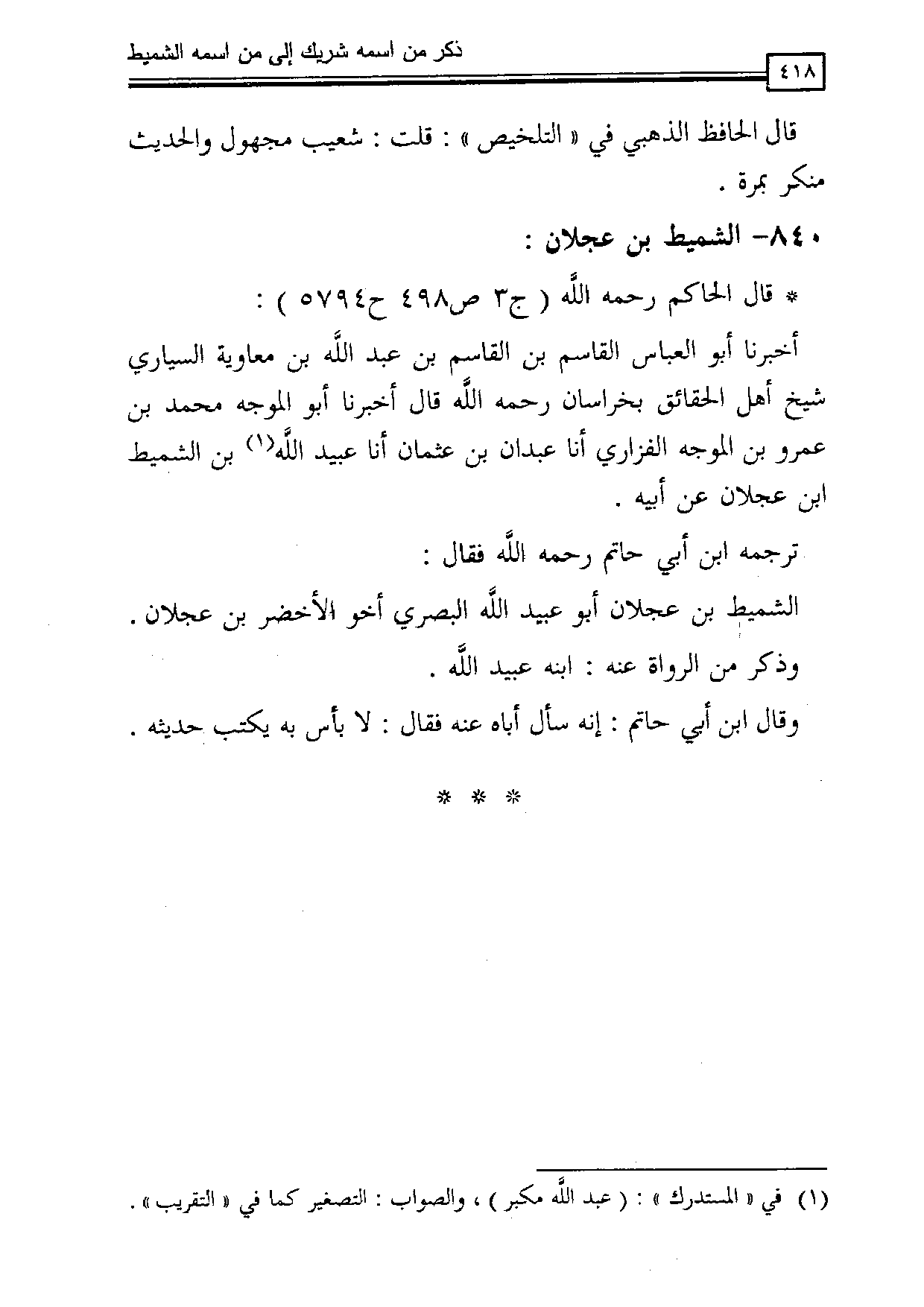 * قال الحاكم رحمه الله (ج 3 ص 498 ح 5794):