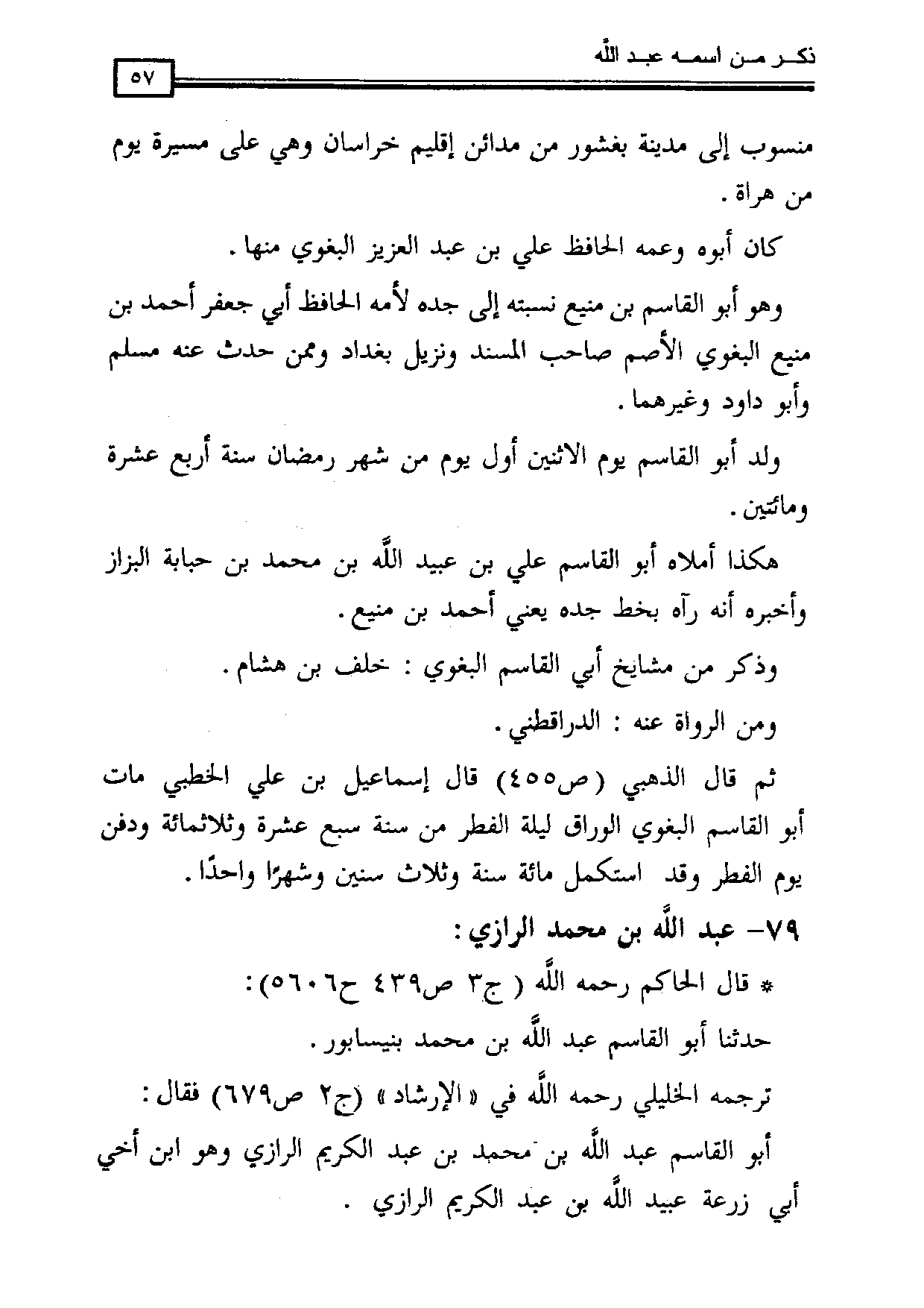 79 - عبد الله بن محمد الرازي * قال الحاكم رحمه الله (ج 3 ص 439 ح 5606):