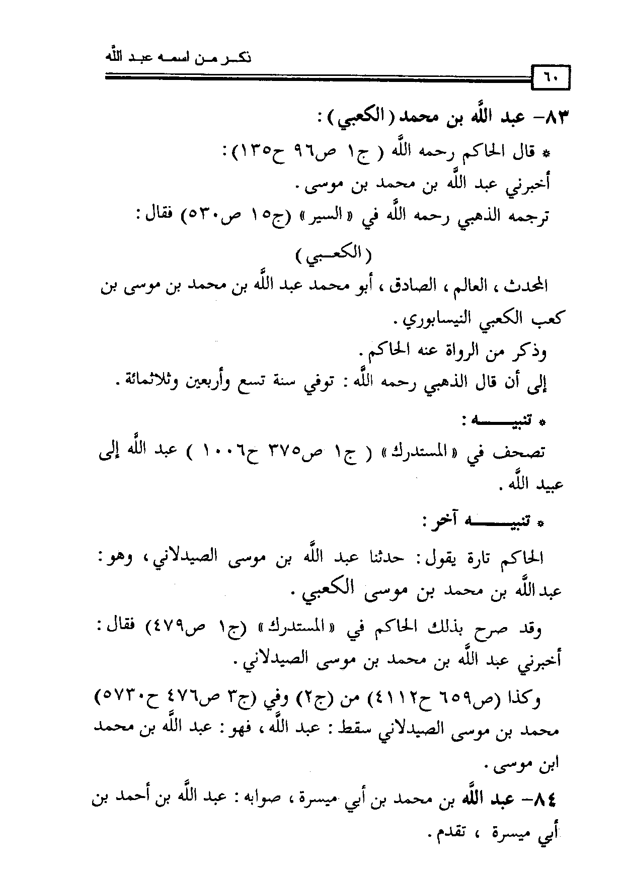 الحاكم تارة يقول: حدثنا عبد الله بن موسى الصيدلاني، وهو: عبد الله بن محمد بن موسى الكعبي.