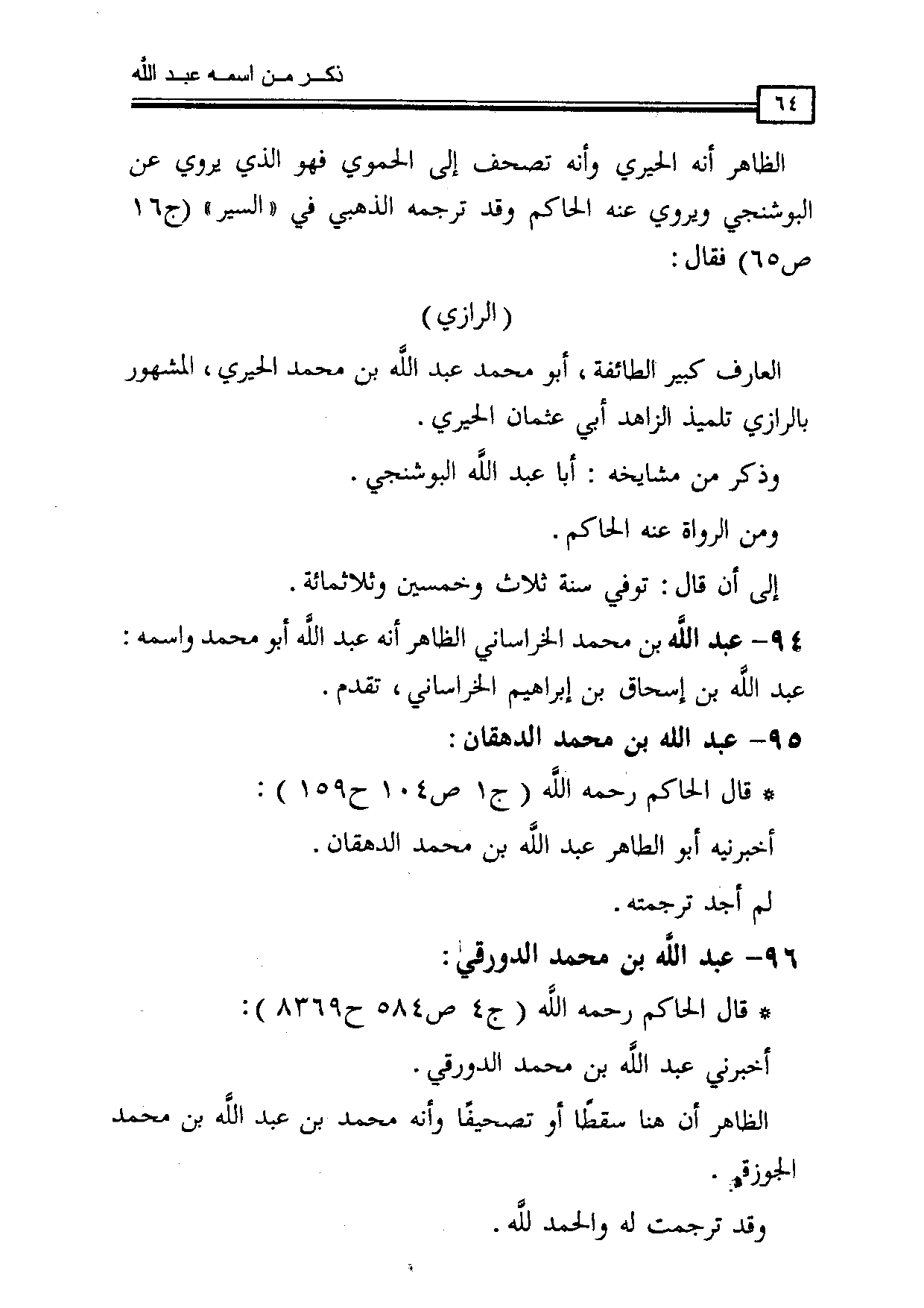 94 - عبد الله بن محمد الخراساني الظاهر أنه عبد الله أبو محمد واسمه: عبد الله بن إسحاق بن إبراهيم الخراساني، تقدم.