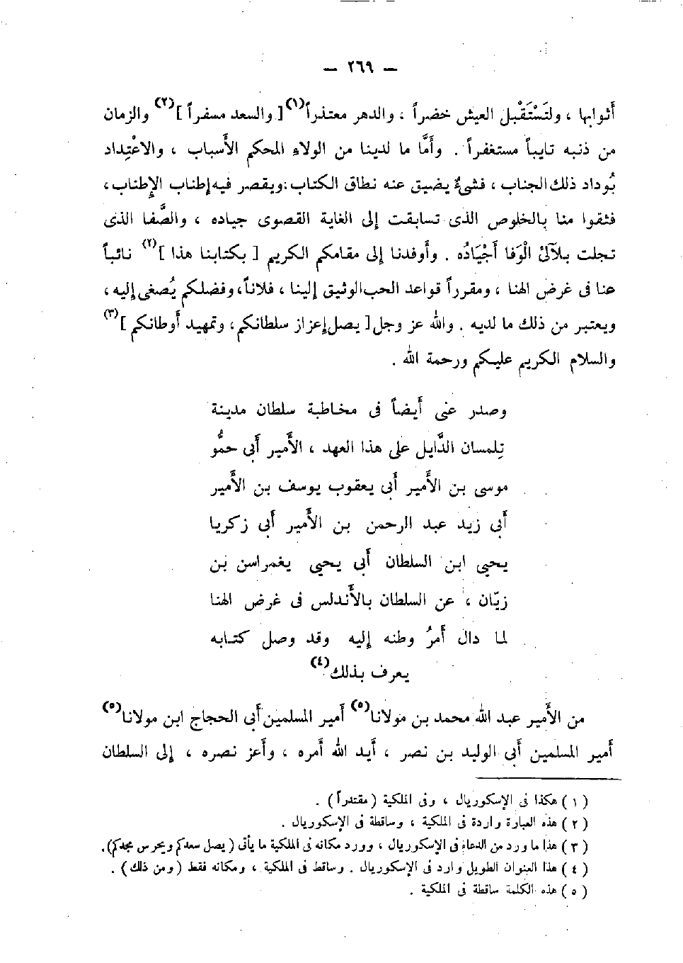 وَصدر عني أَيْضا فِي مُخَاطبَة سُلْطَان مَدِينَة تلمسان الدايل على هَذَا الْعَهْد، الْأَمِير أبي حمو مُوسَى بن الْأَمِير أبي يَعْقُوب يُوسُف بن الْأَمِير أبي زيد عبد الرَّحْمَن بن الْأَمِير أبي زَكَرِيَّا يحيى ابْن السُّلْطَان أبي يحيى يغمراسن بن زيان، عَن السُّلْطَان بالأندلس فِي غَرَض الهنا لما دَال أَمر وَطنه إِلَيْهِ وَقد وصل كِتَابه يعرف بذلك