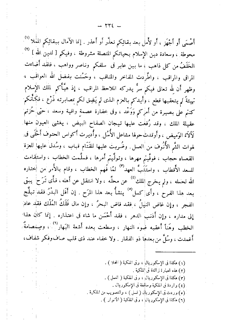 أصمى أَو أجهز، أَو لأمل بعد بقائكم تعذر أَو أعذر، إِنَّمَا الآمال ببقائكم المملا محوطة، وسعادة دين الْإِسْلَام بحياتكم الْمُتَّصِلَة مَشْرُوطَة، وَفِيكُمْ [لدين الله] الْخلف من ذَاهِب، مَا بَين عَابِر فِي سلفكم وناصر وواهب، فَلَقَد أَضَاءَت المراقي والمراقب، واطردت المفاخر والمناقب، وَحسنت بِفضل الله العواقب، وَظهر أَن لله تَعَالَى فِيكُم سر يُدْرِكهُ الملاحظ المراقب، إِذْ هيأكم لملك الْإِسْلَام تهيئة لم يتعقبها قطع، وأيدكم بالعزم الَّذِي لم يضق لكم بمصابرته ذرع، فكأنكم كُنْتُم على بَصِيرَة من أَمركُم ووعد، وَفِي خفارة عصمَة واقية وَسعد، حَتَّى حزتم عقيلة الْملك، وَقد رفعت عَلَيْهَا تيجان الصفاح الْبيض، يغشى الْعُيُون مِنْهَا لألاء الوميض، وَأوقدت حولهَا مشاعل الأسل، وأديرت أكواس الحتوف أحلى فِي لَهَوَات الشم الأنوف من الْعَسَل. وَضربت عَلَيْهَا للقتام قباب، وسدل عَلَيْهَا للعزة القعساء حجاب، فوفيتم مهرهَا، وتوليتم أمرهَا، فَسلمت الْخطاب، واستقامت للسعد الأقطاب، واستتب الْعَهْد لما فهم الْخطاب، وَقَامَ بِالْأَمر من اخْتَارَهُ الله لحمله، وَلم يخرج الْملك عَن مَحَله، وَلَا انْتقل عَن أَهله، فَأَي ترح يبْقى بعد هَذَا الْفَرح، وَأي كسل ينشأ بعد هَذَا المرح. إِن أفل الْبَدْر فقد تبلج الْفجْر، وَإِن غاض النّيل، فقد فاض الْبَحْر، وَإِن مَال فلك الْملك فقد عَاد إِلَى مَدَاره، وَإِن أذْنب الدَّهْر، فقد أحسن مَا شَاءَ فِي اعتذاره. إِنَّمَا كَانَ هَذَا الْخطب وَهنا أعقبه ضوء النَّهَار، وسطعت بعده اشعة البهار، وصمصامة أغمدت، وسل من بعْدهَا ذُو الفقار. وَلَا خَفَاء عِنْد ذِي قلب صَاف وفكر شفاف،