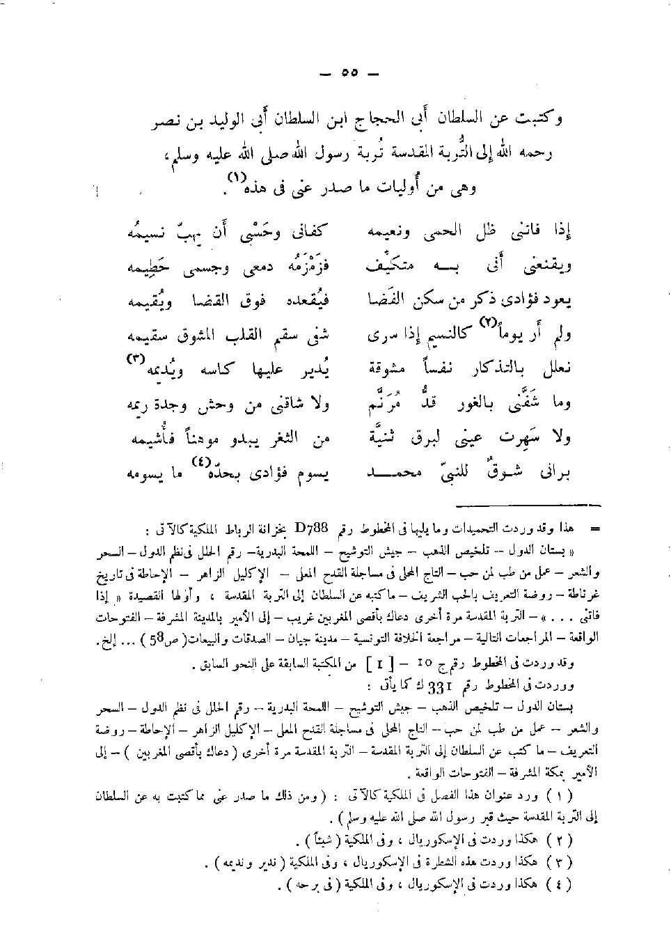 وكتبت عَن السُّلْطَان أبي الْحجَّاج ابْن السُّلْطَان أبي الْوَلِيد بن نصر رَحمَه الله إِلَى التربة المقدسة تربة رَسُول الله صلى الله عَلَيْهِ وَسلم، وَهِي من أوليات مَا صدر عني فِي هَذِه.