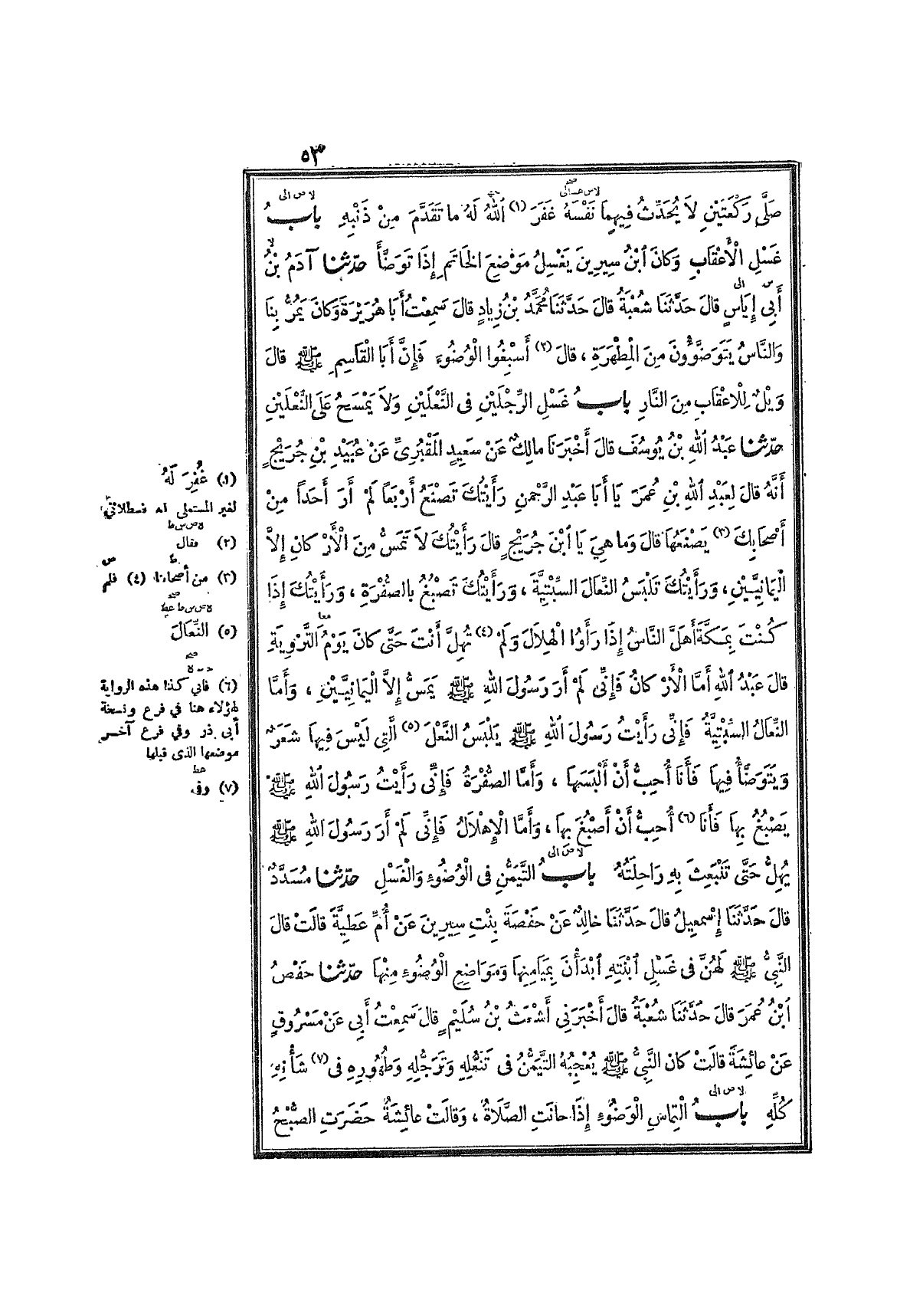 165- حَدَّثَنَا آدَمُ بْنُ أَبِي إِيَاسٍ قَالَ : حَدَّثَنَا شُعْبَةُ قَالَ : حَدَّثَنَا مُحَمَّدُ بْنُ زِيَادٍ قَالَ : سَمِعْتُ أَبَا هُرَيْرَةَ ، وَكَانَ يَمُرُّ بِنَا وَالنَّاسُ يَتَوَضَّؤُونَ مِنَ الْمِطْهَرَةِ- قَالَ أَسْبِغُوا الْوُضُوءَ فَإِنَّ أَبَا الْقَاسِمِ صلى الله عليه وسلم قَالَ : وَيْلٌ لِلأَعْقَابِ مِنَ النَّارِ.