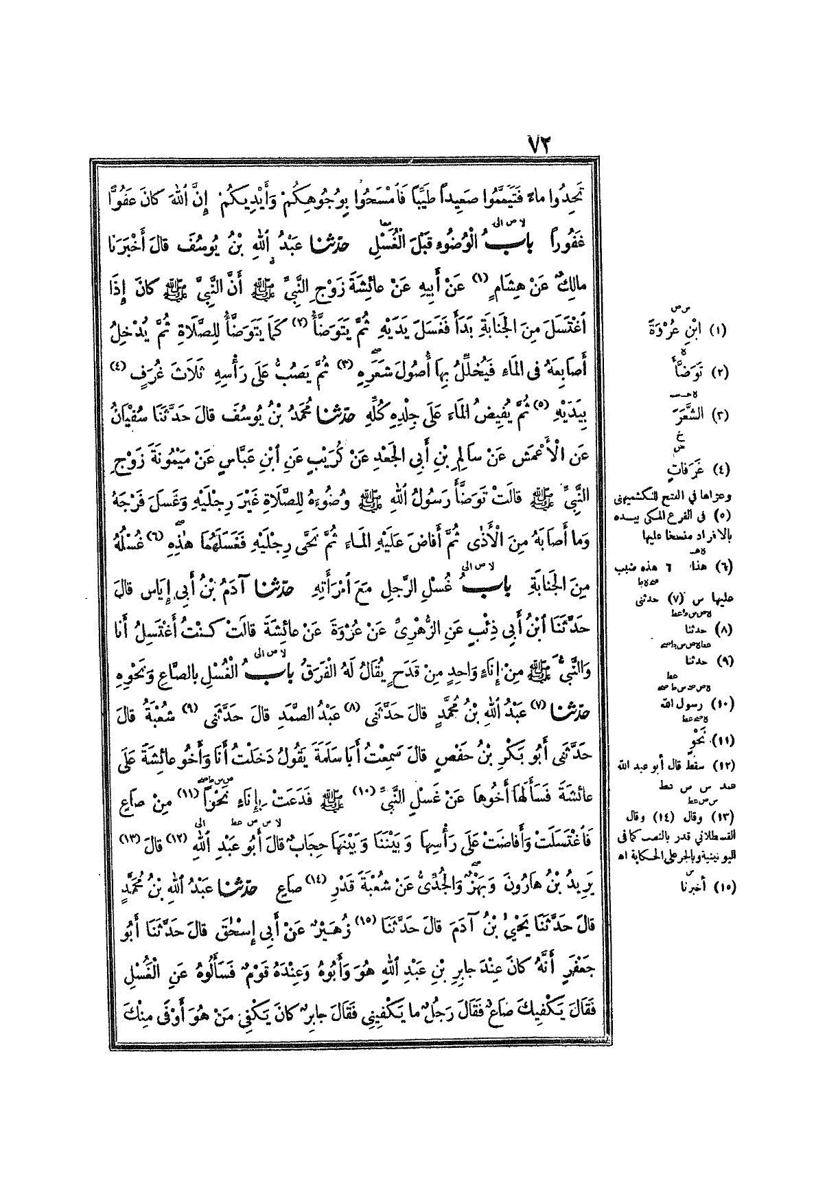252- حَدَّثَنَا عَبْدُ اللهِ بْنُ مُحَمَّدٍ قَالَ Y حَدَّثَنَا يَحْيَى بْنُ آدَمَ قَالَ Y حَدَّثَنَا زُهَيْرٌ ، عَنْ أَبِي إِسْحَاقَ قَالَ Y حَدَّثَنَا أَبُو جَعْفَرٍ أَنَّهُ كَانَ عِنْدَ جَابِرِ بْنِ عَبْدِ اللهِ هُوَ وَأَبُوهُ وَعِنْدَهُ قَوْمٌ فَسَأَلُوهُ ، عَنِ الْغُسْلِ فَقَالَ يَكْفِيكَ صَاعٌ فَقَالَ رَجُلٌ مَا يَكْفِينِي فَقَالَ جَابِرٌ كَانَ يَكْفِي مَنْ هُوَ أَوْفَى مِنْكَ شَعَرًا وَخَيْرٌ مِنْكَ ثُمَّ أَمَّنَا فِي ثَوْبٍ