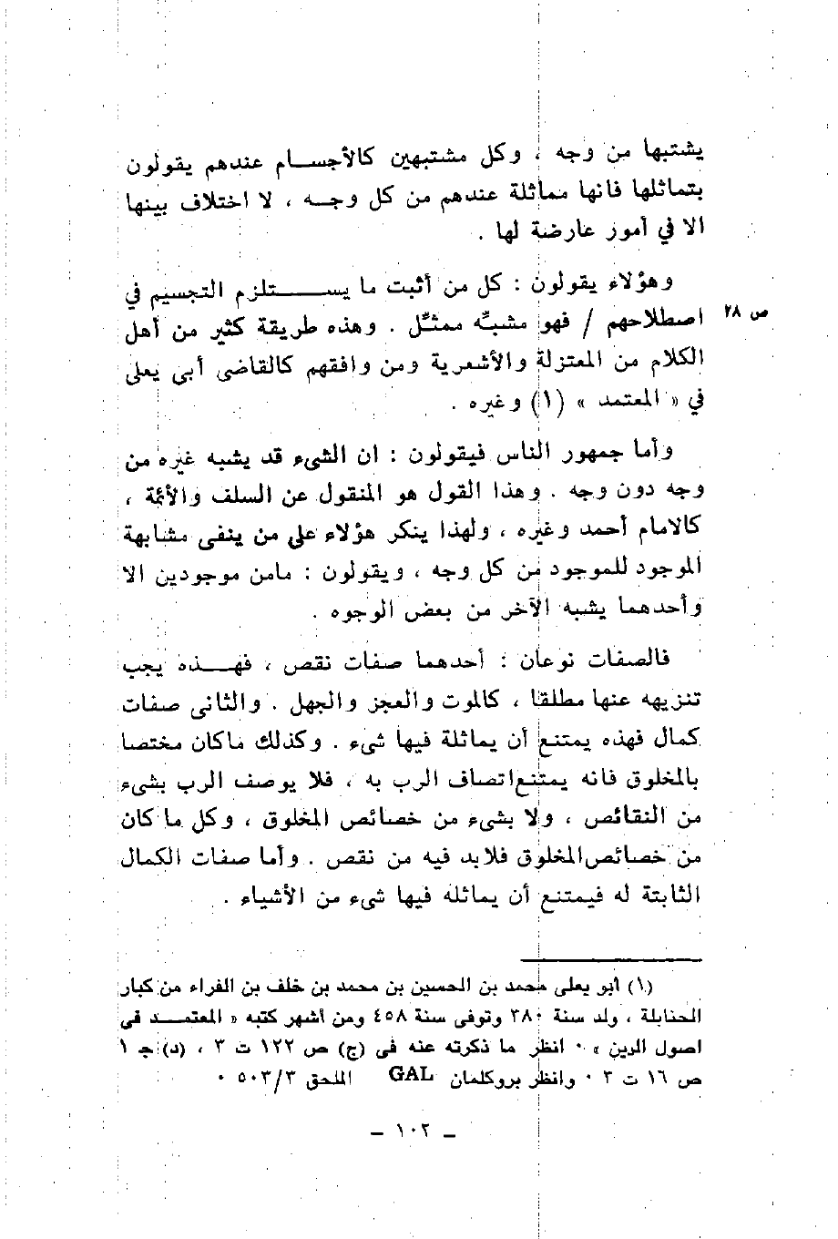 وهؤلاء يقولون كل من أثبت ما يستلزم التجسيم في اصطلاحهم فهو مشبه ممثل وهذه طريقة كثير من أهل الكلام من المعتزلة والأشعرية ومن وافقهم كالقاضي أبي يعلى في المعتمد وغيره وأما جمهور الناس فيقولون أن الشيء قد يشبه غيره من وجه دون وجه وهذا القول هو المنقول عن السلف والأئمة كالإمام أحمد وغيره ولهذا ينكر هؤلاء على من ينفي مشابهة الموجود للموجود من كل وجه ويقولون ما من موجودين إلا وأحدهما يشبه الآخر من بعض الوجوه