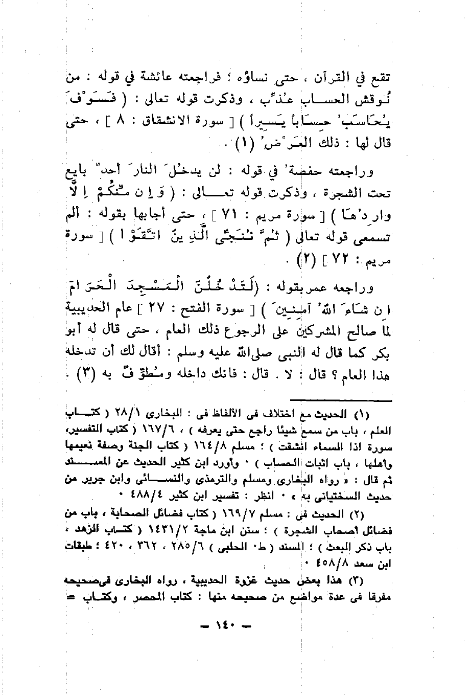 وراجعته حفصة في قوله لن يدخل النار أحد بايع تحت الشجرة وذكرت قوله تعالى {وَإِنْ مِنْكُمْ إِلَّا وَارِدُهَا} حتى أجابها بقوله ألم تسمعي قوله تعالى {ثُمَّ نُنَجِّي الَّذِينَ اتَّقَوْا}