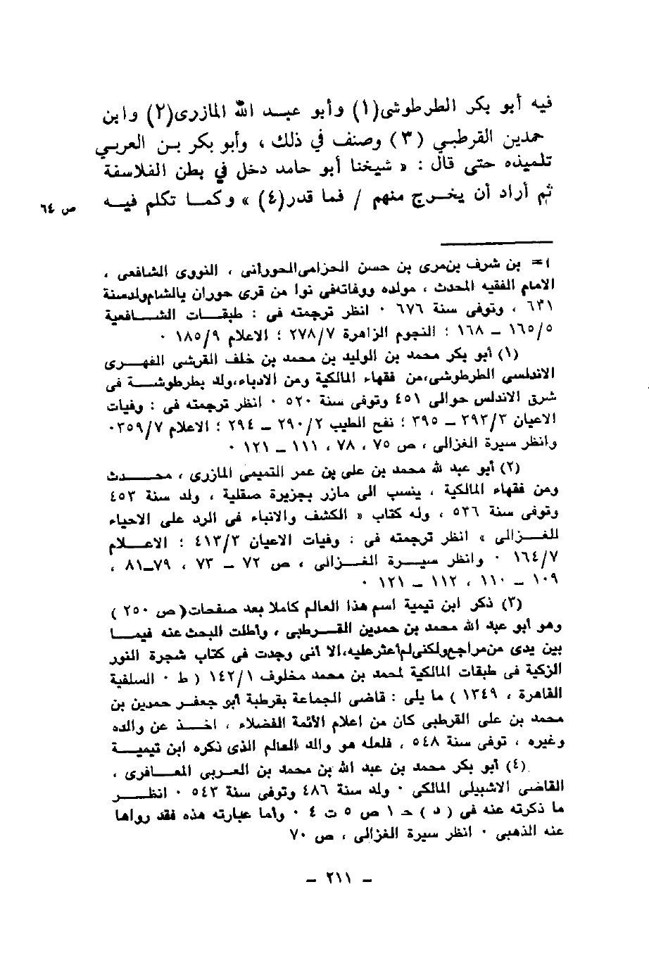 فيه أبو بكر الطرطوشي وأبو عبد الله المازري وابن حمدين القرطبي وصنف في ذلك وأبو بكر بن العربي تلميذه حتى قال شيخنا أبو حامد دخل في بطن الفلاسفة ثم أراد أن يخرج منهم فما قدر وكما تكلم فيه