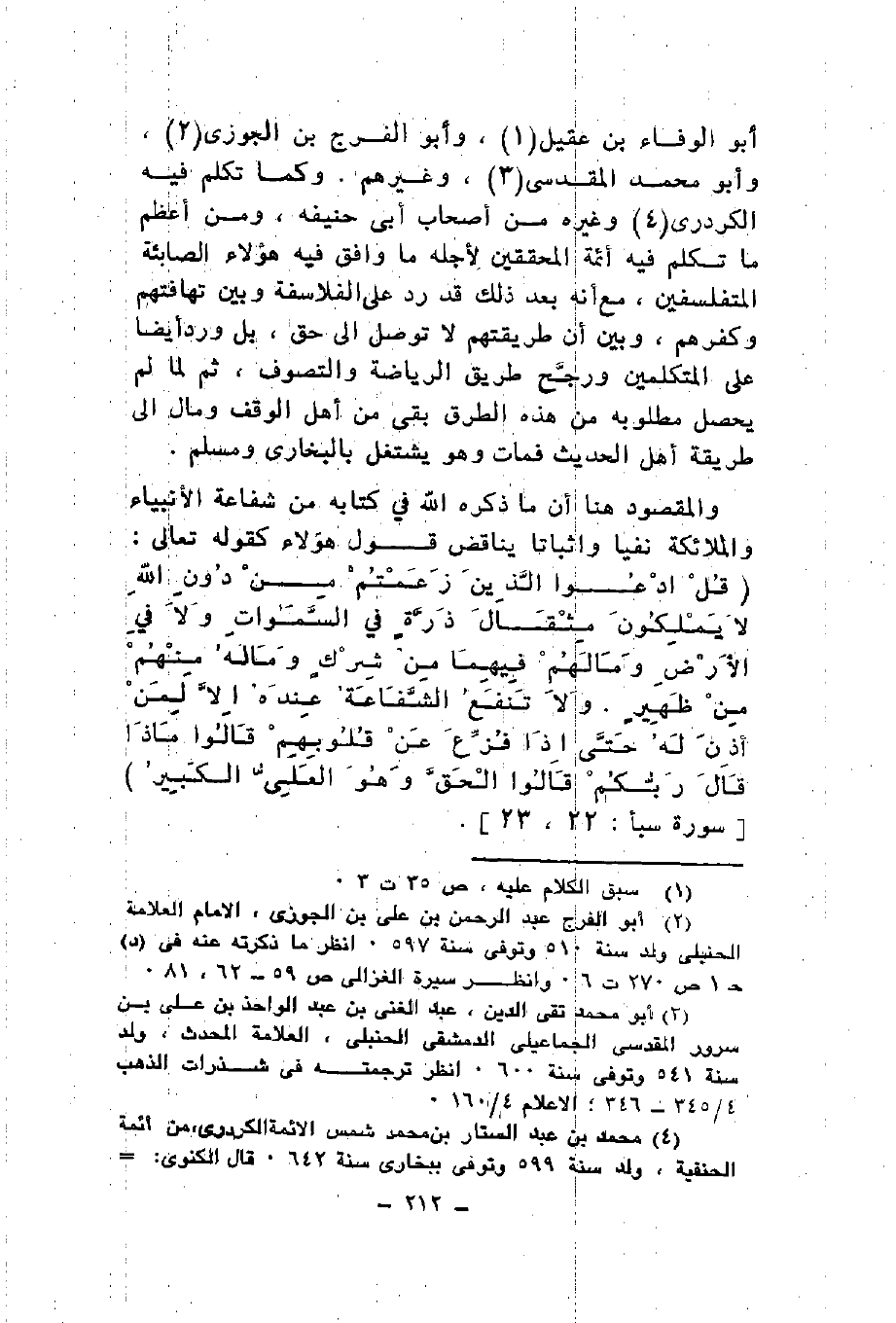 أبو الوفاء بن عقيل وأبو الفرج بن الجوزي وأبو محمد المقدسي وغيرهم وكما تكلم فيه الكردري وغيره من أصحاب أبي حنيفة ومن أعظم ما تكلم فيه أئمة المحققين لأجله ما وافق فيه هؤلاء الصابئة المتفلسفين مع أنه بعد ذلك قد رد على الفلاسفة وبين تهافتهم وكفرهم وبين أن طريقتهم لا توصل إلى حق بل ورد أيضا على المتكلمين ورجح طريق الرياضة والتصوف ثم لما لم يحصل مطلوبه من هذه الطرق بقي من أهل الوقف ومال إلى طريقة أهل الحديث فمات وهو يشتغل بالبخاري ومسلم