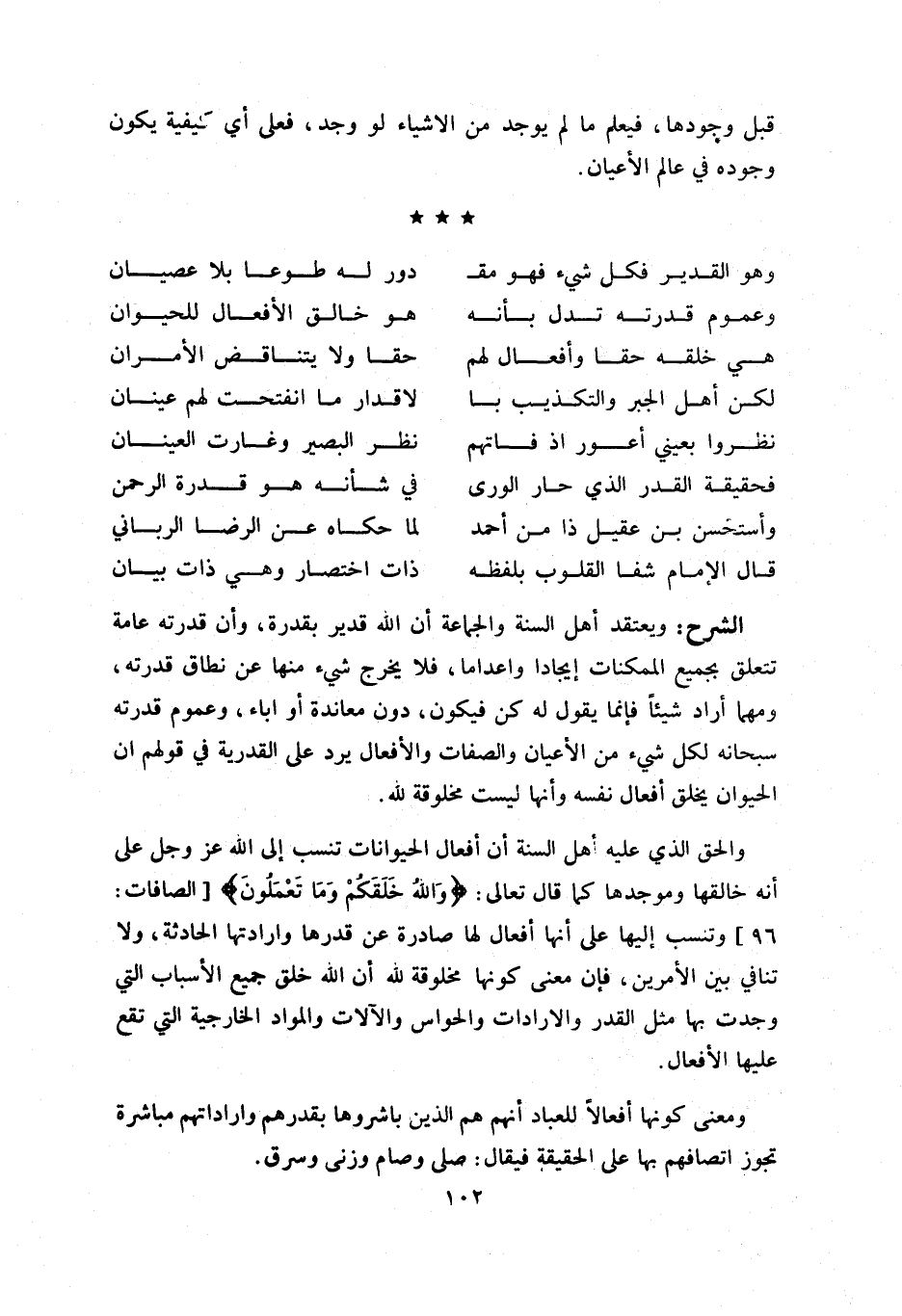 96] وتنسب إليها على أنها أفعال لها صادرة عن قدرها وارادتها الحادثة، ولا تنافي بين الأمرين، فإن معنى كونها مخلوقة للّه أن اللّه خلق جميع الأسباب التي وجدت بها مثل القدر والارادات والحواس والآلات والمواد الخارجية التي تقع عليها الأفعال.