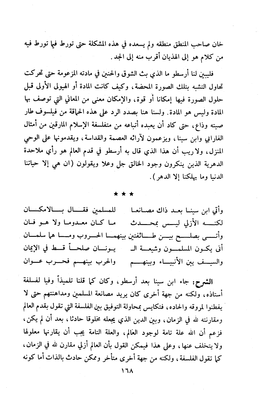 وأتي ابن سينا بعد ذاك مصانعا ... للمسلمين فقال بالامكان