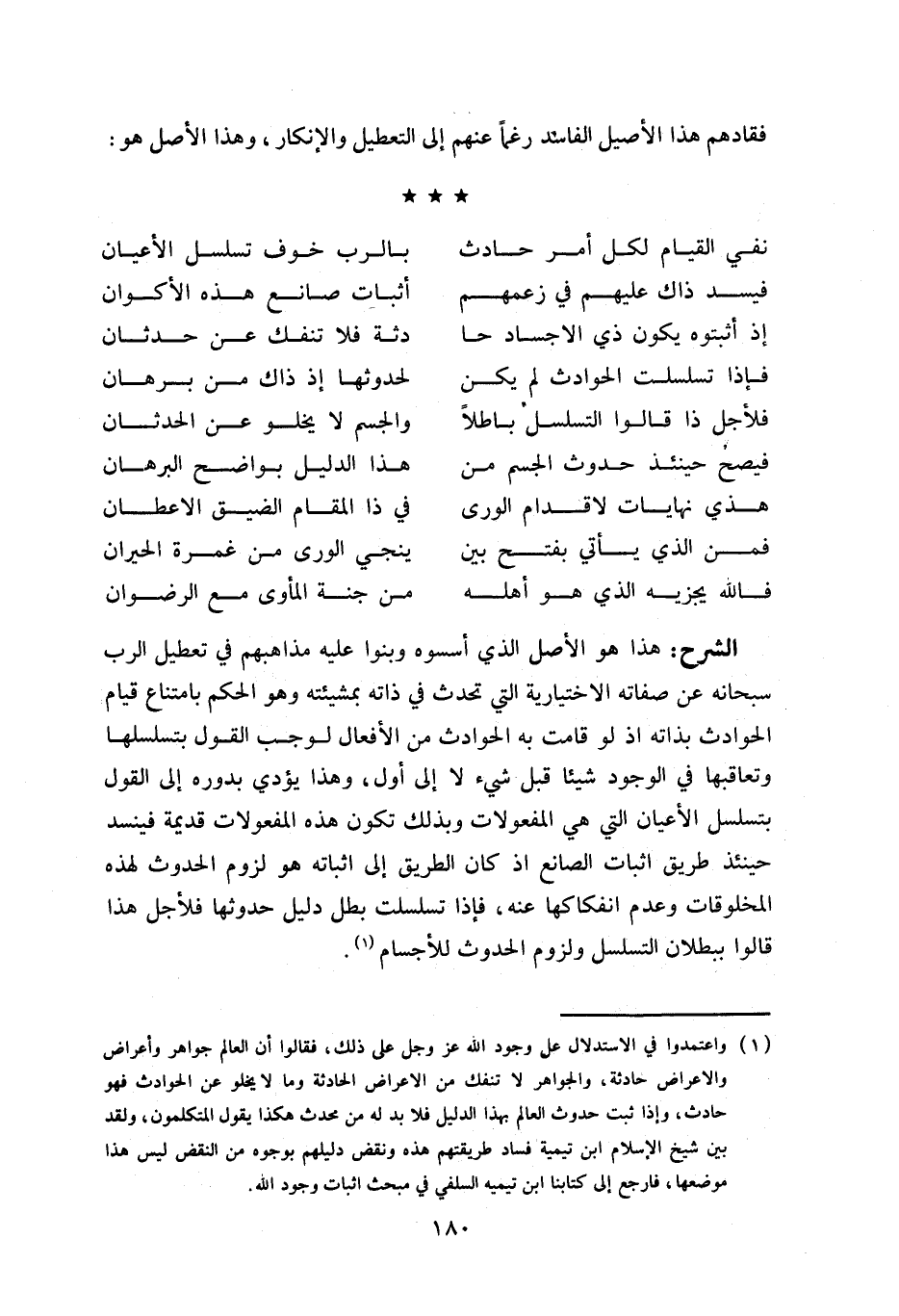 فإذا تسلسلت الحوادث لم يكن ... لحدوثها إذ ذاك من برهان
