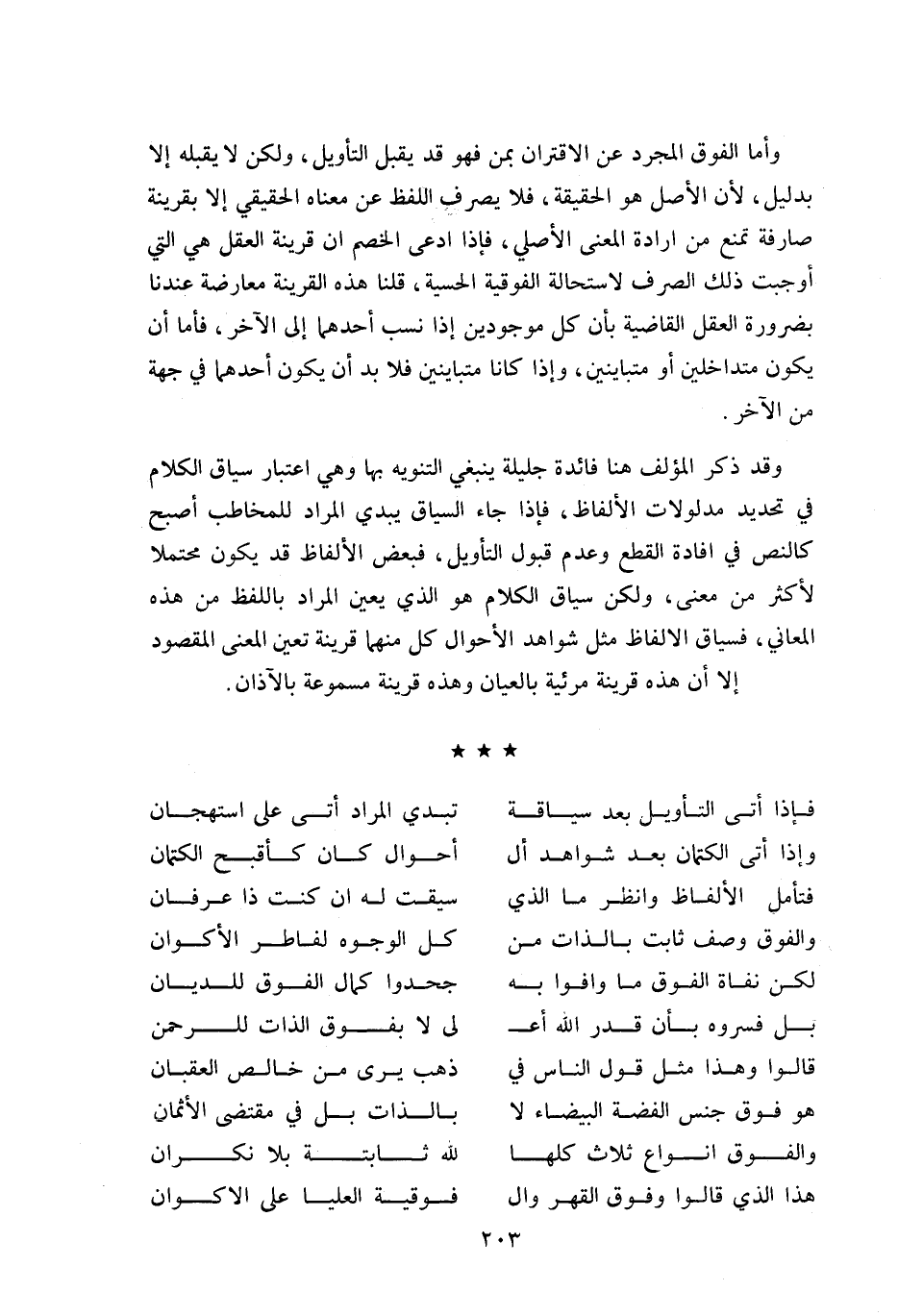 و قد ذكر المؤلف هنا فائدة جليلة ينبغي التنويه بها وهي اعتبار سياق الكلام في تحديد مدلولات الألفاظ، فإذا جاء السياق يبدي المراد للمخاطب أصبح كالنص في افادة القطع وعدم قبول التأويل، فبعض الألفاظ قد يكون محتملا لأكثر من معنى، ولكن سياق الكلام هو الذي يعين المراد باللفظ من هذه المعاني، فسياق الألفاظ مثل شواهد الأحوال كل منهما قرينة تعين المعنى المقصود إلا أن هذه قرينة مرئية بالعيان وهذه قرينة مسموعة بالآذان.