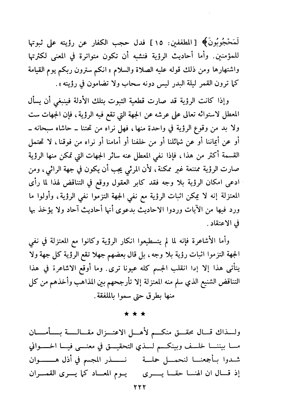 و لذاك قال محقق منكم لأهل الاعتزال مقالة بأمان ما بيننا خلف وبينكم لذي التحقيق في معنى فيا اخواني