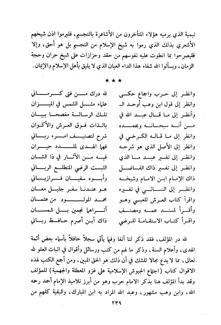 تيمية الذي يرميه هؤلاء المتأخرون من الأشاعرة بالتجسيم، فليرموا اذن شيخهم الأشعري بذلك الذي رموا به شيخ الإسلام من التجسيم بل هو أحق، وإلا فليصرحوا بما انطوت عليه نفوسهم من حقد وحزازات على شيخ حران وحجة الزمان، ويسألوا اللّه شفاء هذا الداء العيان الذي لا يليق بأهل الإسلام والإيمان.