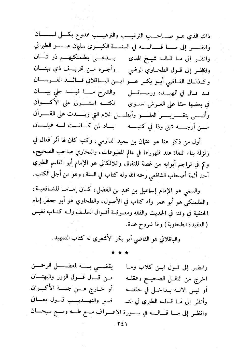 وانظر إلى قول ابن كلاب وما ... يقضي به لمعطل الرحمن