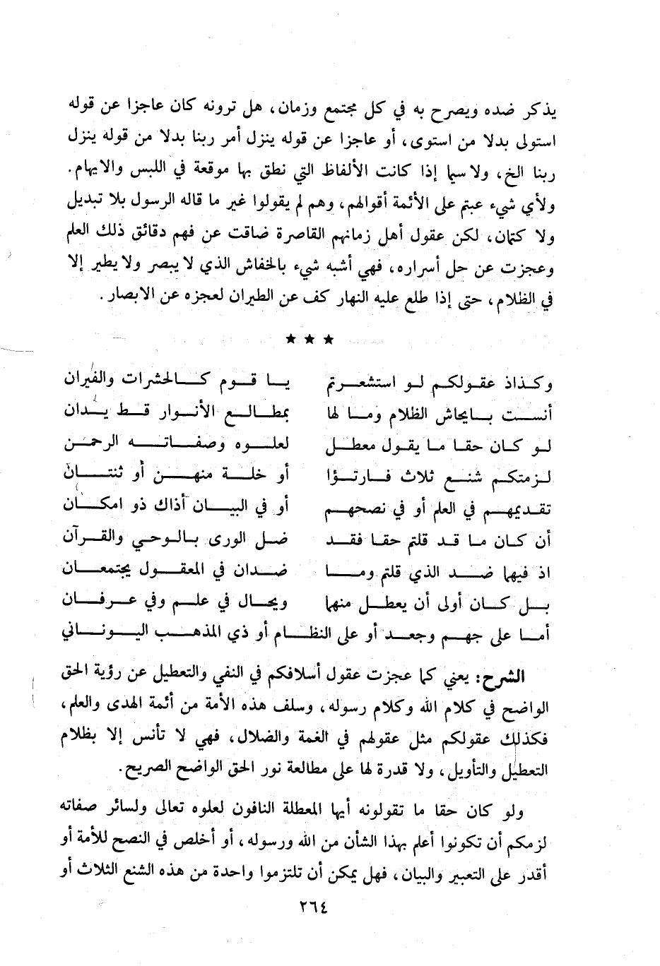يذكر ضده ويصرح به في كل مجتمع وزمان، هل ترونه كان عاجزا عن قوله استولى بدلا من استوى، أو عاجزا عن قوله ينزل أمر ربنا بدلا من قوله ينزل ربنا الخ، ولا سيما إذا كانت الألفاظ التي نطق بها موقعة في اللبس والايهام.