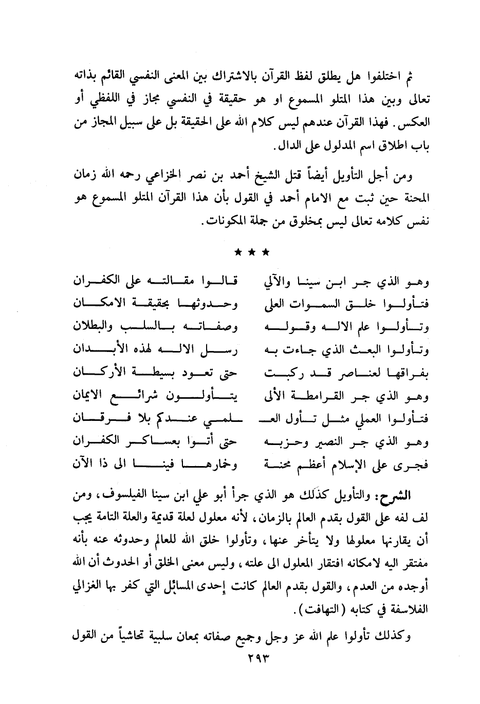 و من أجل التأويل أيضا قتل الشيخ أحمد بن نصر الخزاعي رحمه اللّه زمان المحنة حين ثبت مع الامام أحمد في القول بأن هذا القرآن المتلو المسموع هو نفس كلامه تعالى ليس بمخلوق من جملة المكونات.