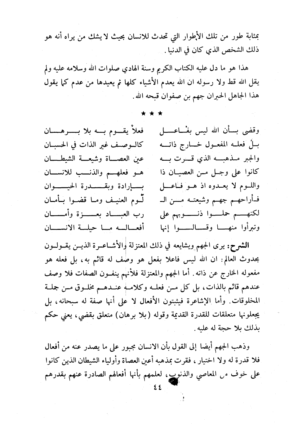 هذا هو ما دل عليه الكتاب الكريم وسنة الهادي صلوات اللّه وسلامه عليه ولم يقل اللّه قط ولا رسوله ان اللّه يعدم الأشياء كلها ثم يعيدها من عدم كما يقول هذا الجاهل الحيران جهم بن صفوان قبحه اللّه.