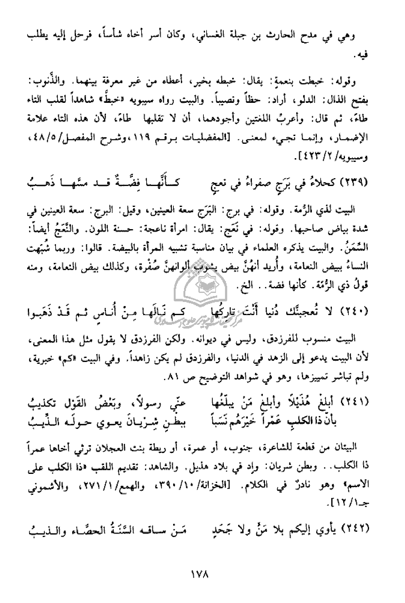 239 - كحلاء في برج صفراء في نعج … كأنّها فضّة قد مسّها ذهب