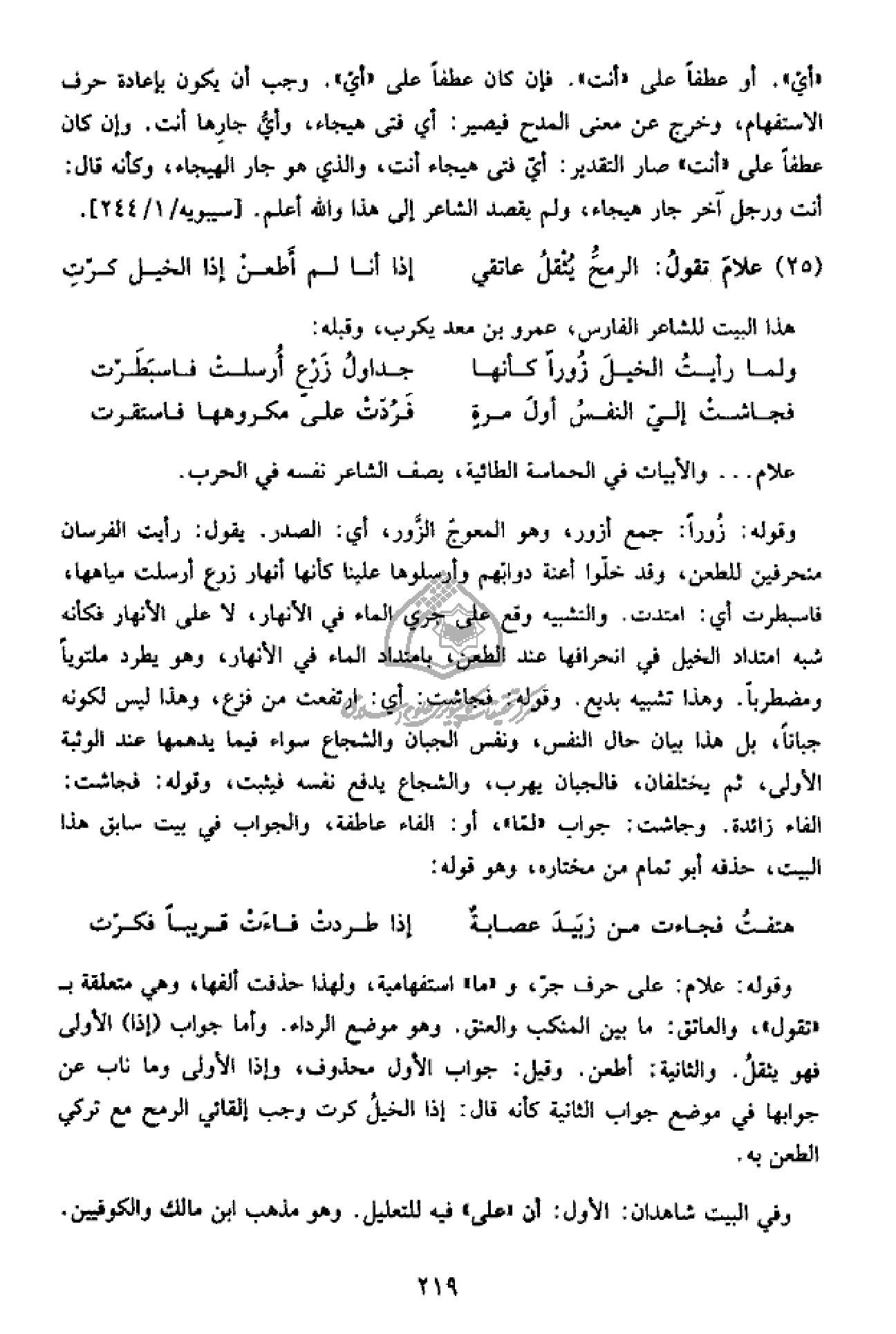 25 - علام تقول: الرمح يثقل عاتقي … إذا أنا لم أطعن إذا الخيل كرّت