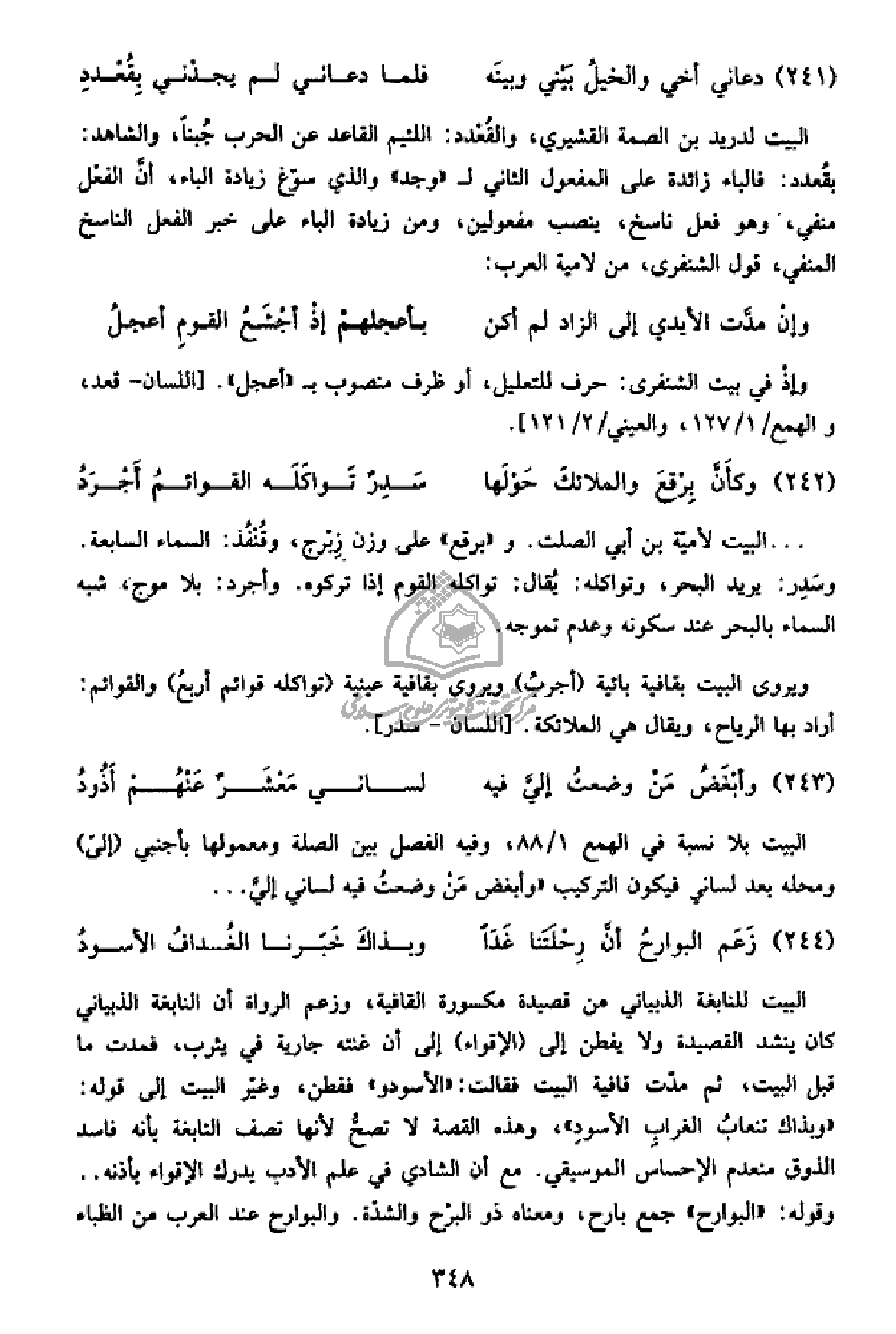 242 - وكأنّ برقع والملائك حولها … سدر تواكله القوائم أجرد