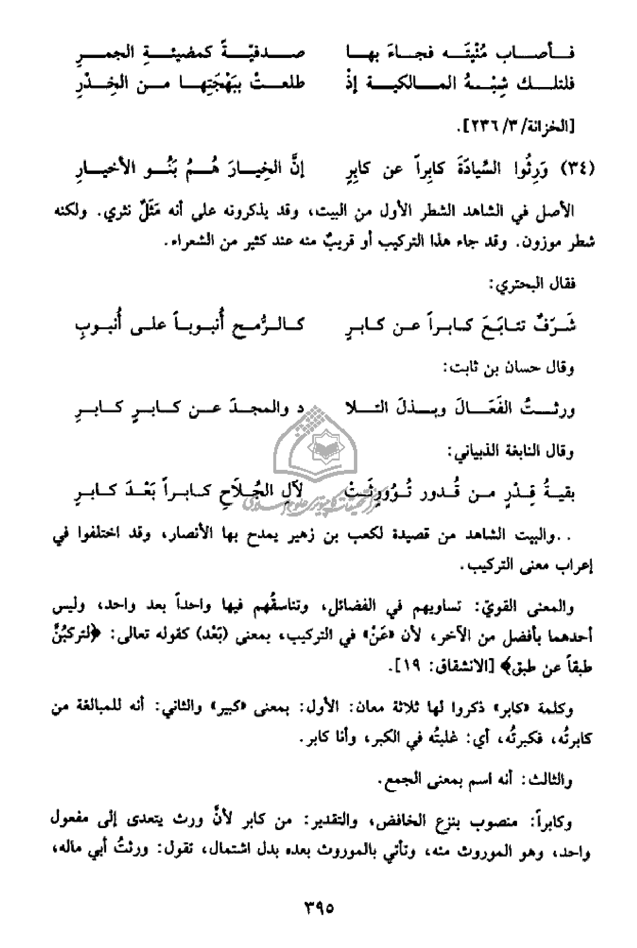 شرف تتابع كابرا عن كابر … كالرّمح أنبوبا على أنبوب