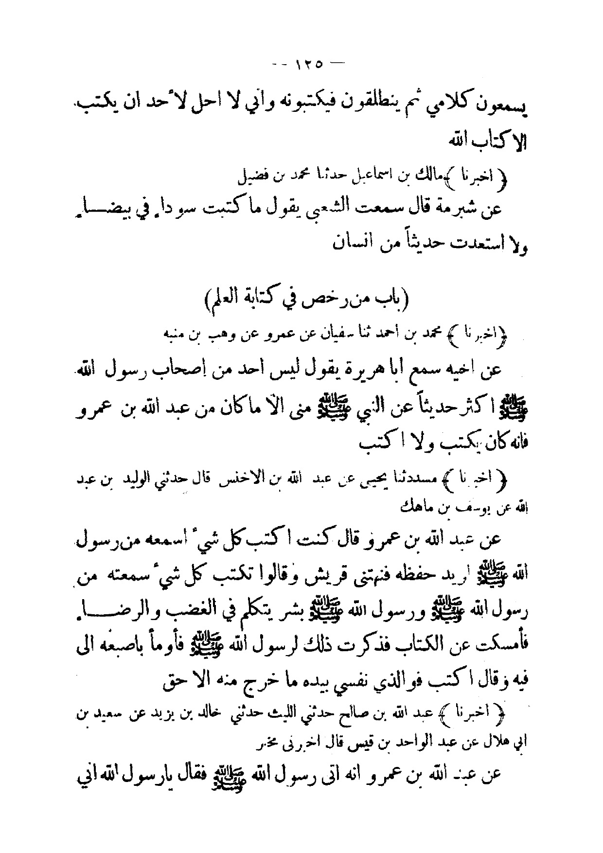 [125] يسمعون كلامي ثم ينطلقون فيكتبونه واني لا احل لاحد ان يكتب الا كتاب الله