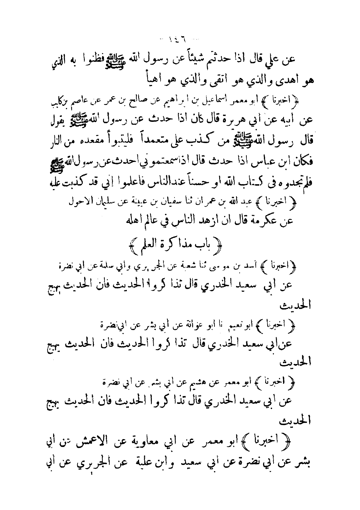 (أخبرنا) أبو معمر عن ابي معاوية عن الاعمش عن ابي بشر عن ابي نضرة عن ابي سعيد وابن علية عن الجريري عن ابي