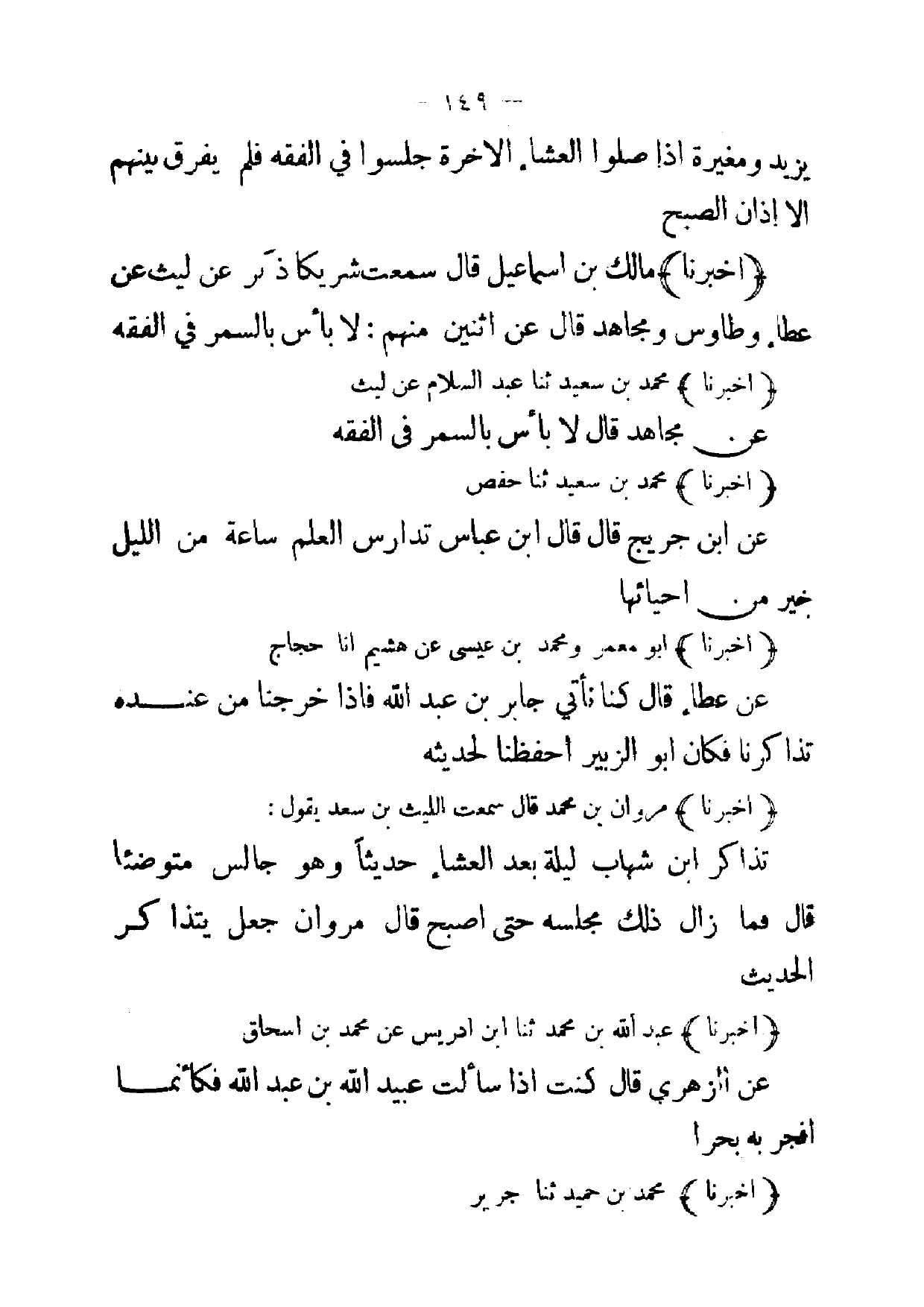 [ 149 ] يزيد ومغيرة إذا صلوا العشاء الاخرة جلسوا في الفقه فلم يفرق بينهم الا اذان الصبح