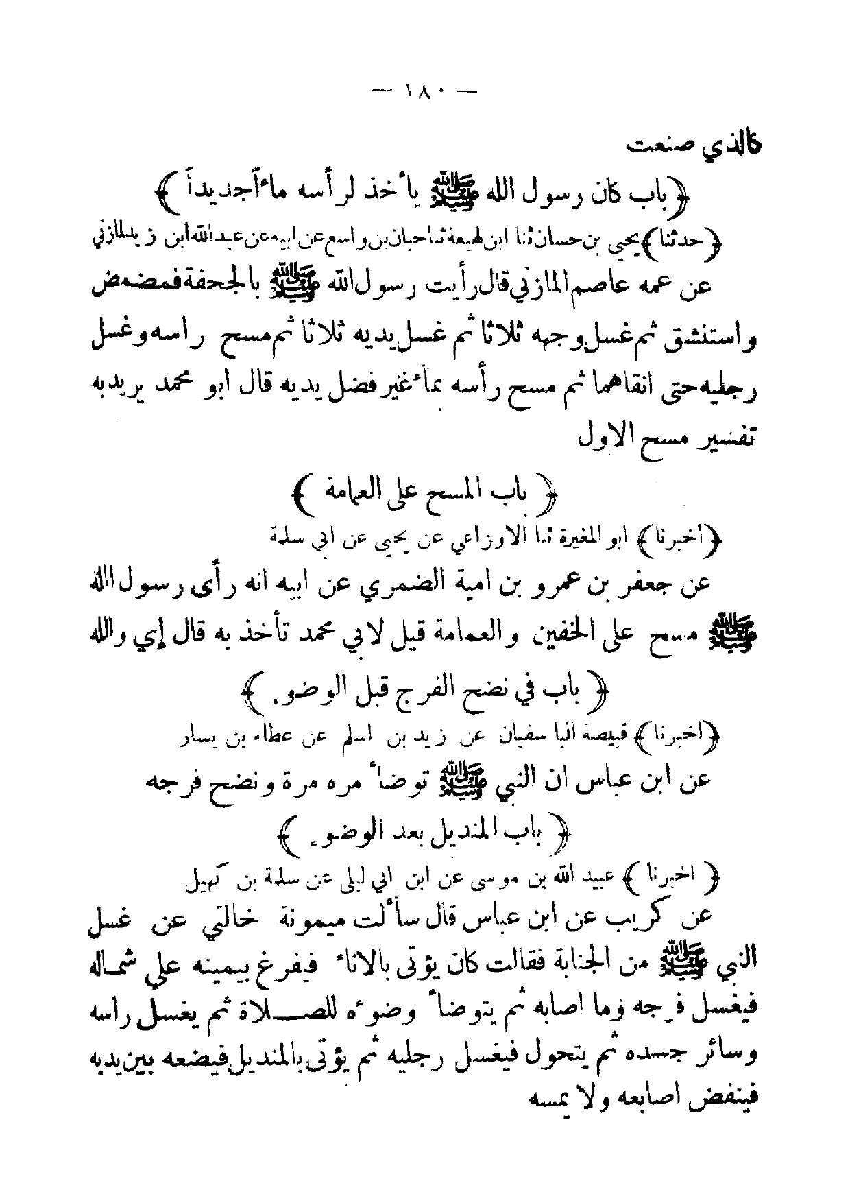 (باب كان رسول الله صلى الله عليه وسلم يأخذ لرأسه ماء اجديدا)