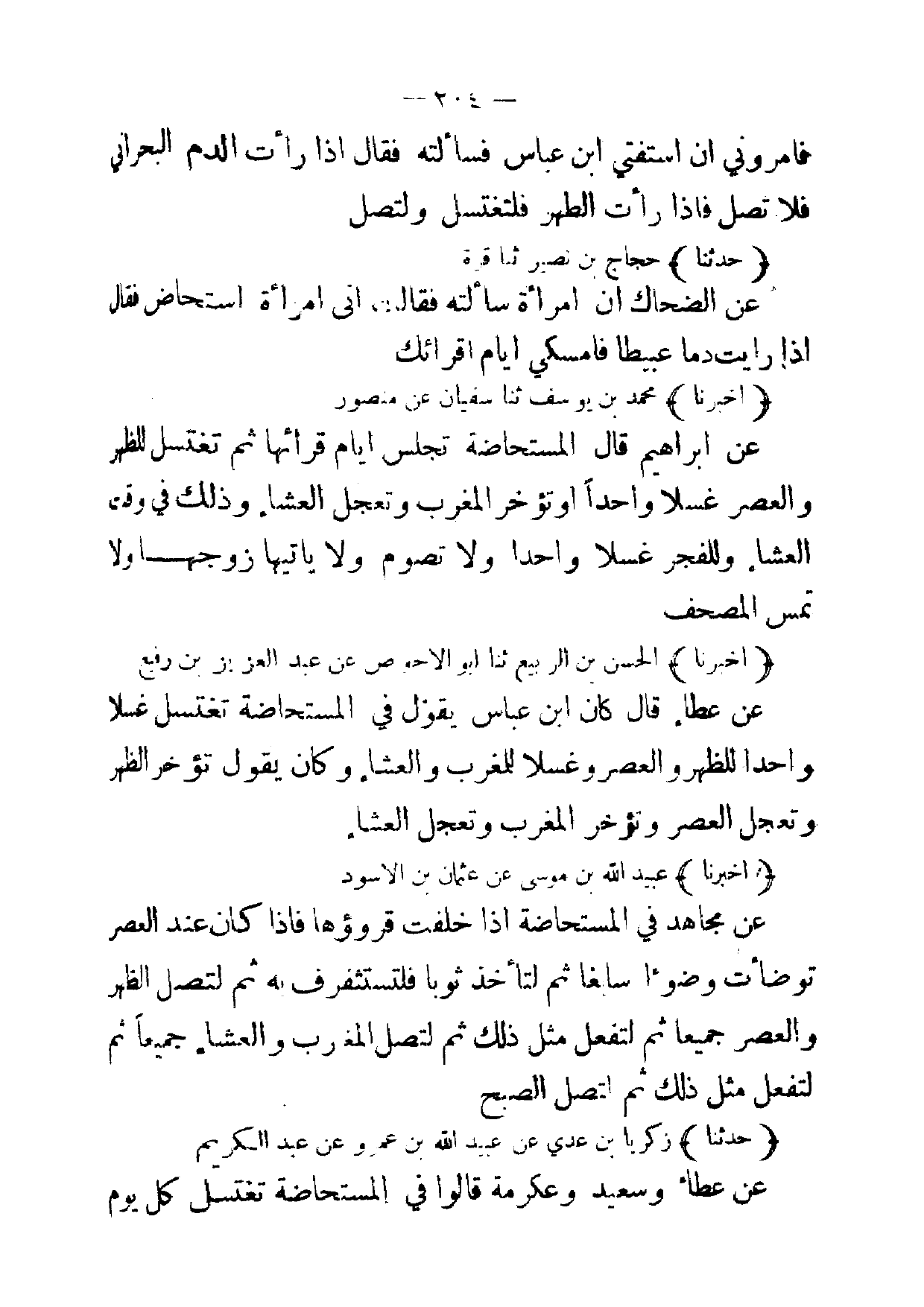 [ 204 ] فامروني ان استفتي ابن عباس فسألته فقال إذا رأت الدم البحراني فلا تصل فإذا رأت الطهر فلتغتسل ولتصل