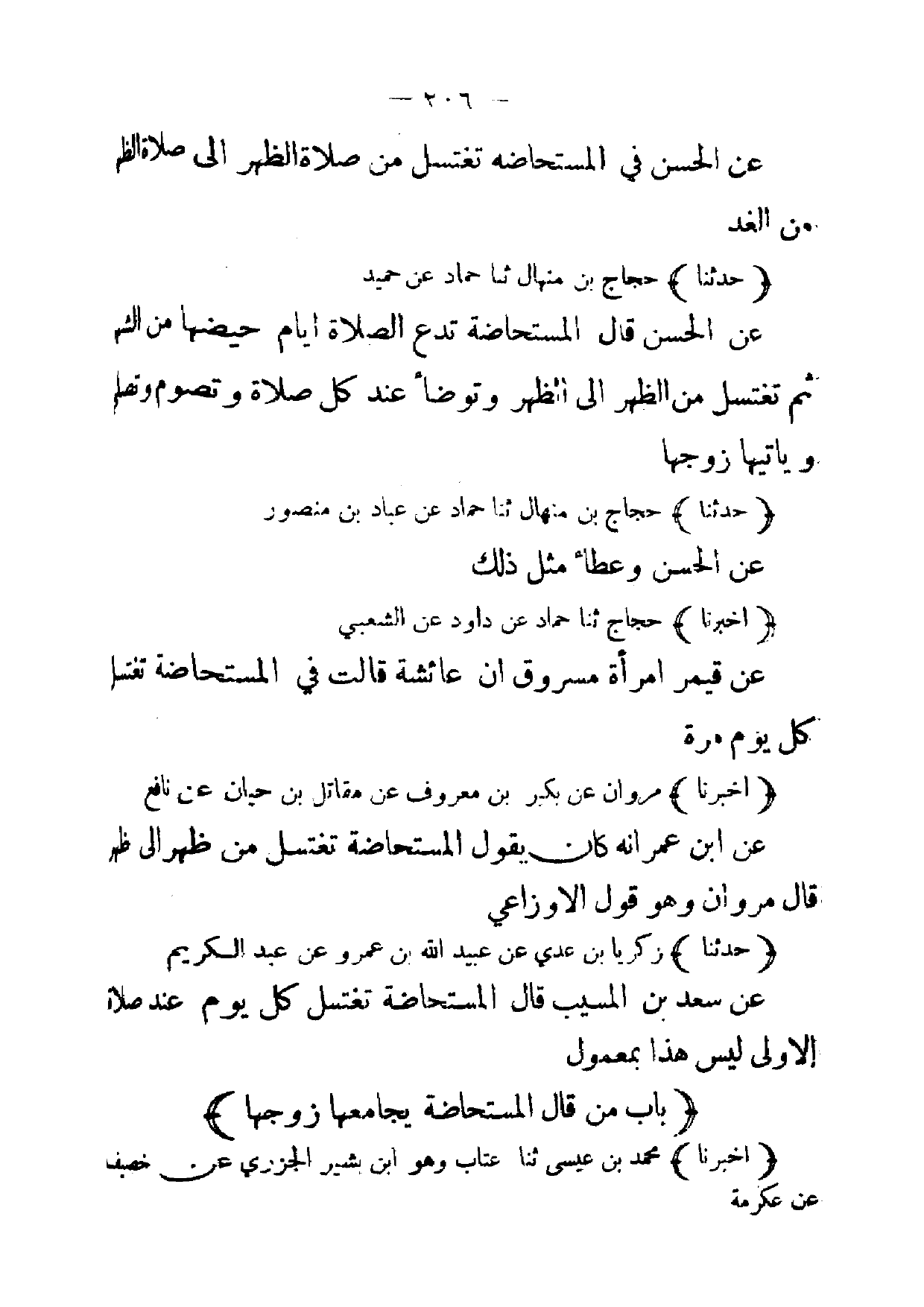 [ 206 ] عن الحسن في المستحاضة تغتسل من صلاة الظهر إلى صلاة الظهر من الغد