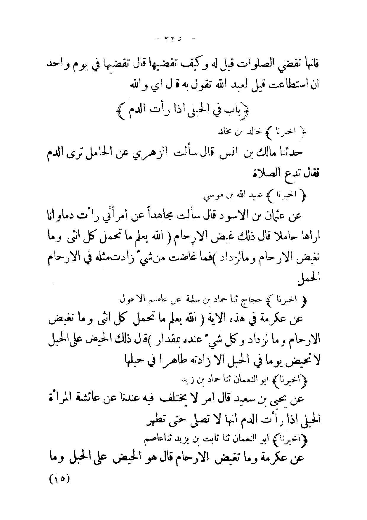 (أخبرنا) أبو النعمان ثنا حماد بن زيد عن يحيى بن سعيد قال امر لا يختلف فيه عندنا عن عائشة المرأة الحبلى إذا رأت الدم انها لا تصلى حتى تطهر